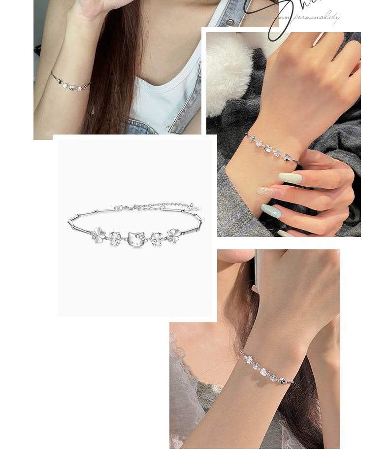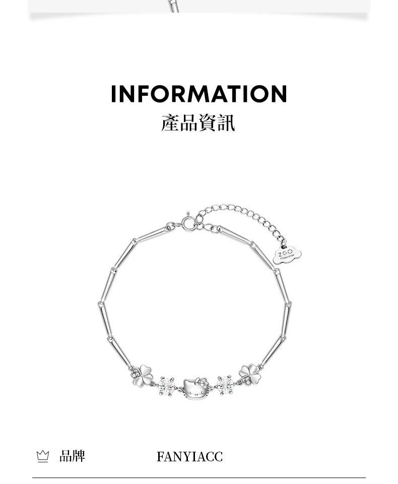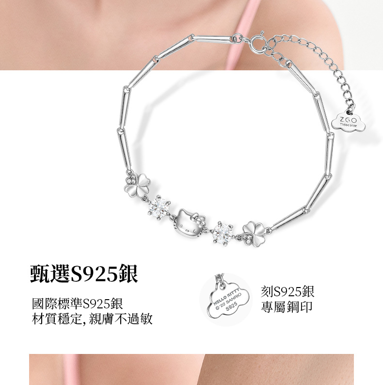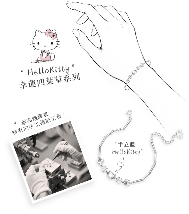 三麗鷗Hellokitty純銀四葉草手錬生日禮物