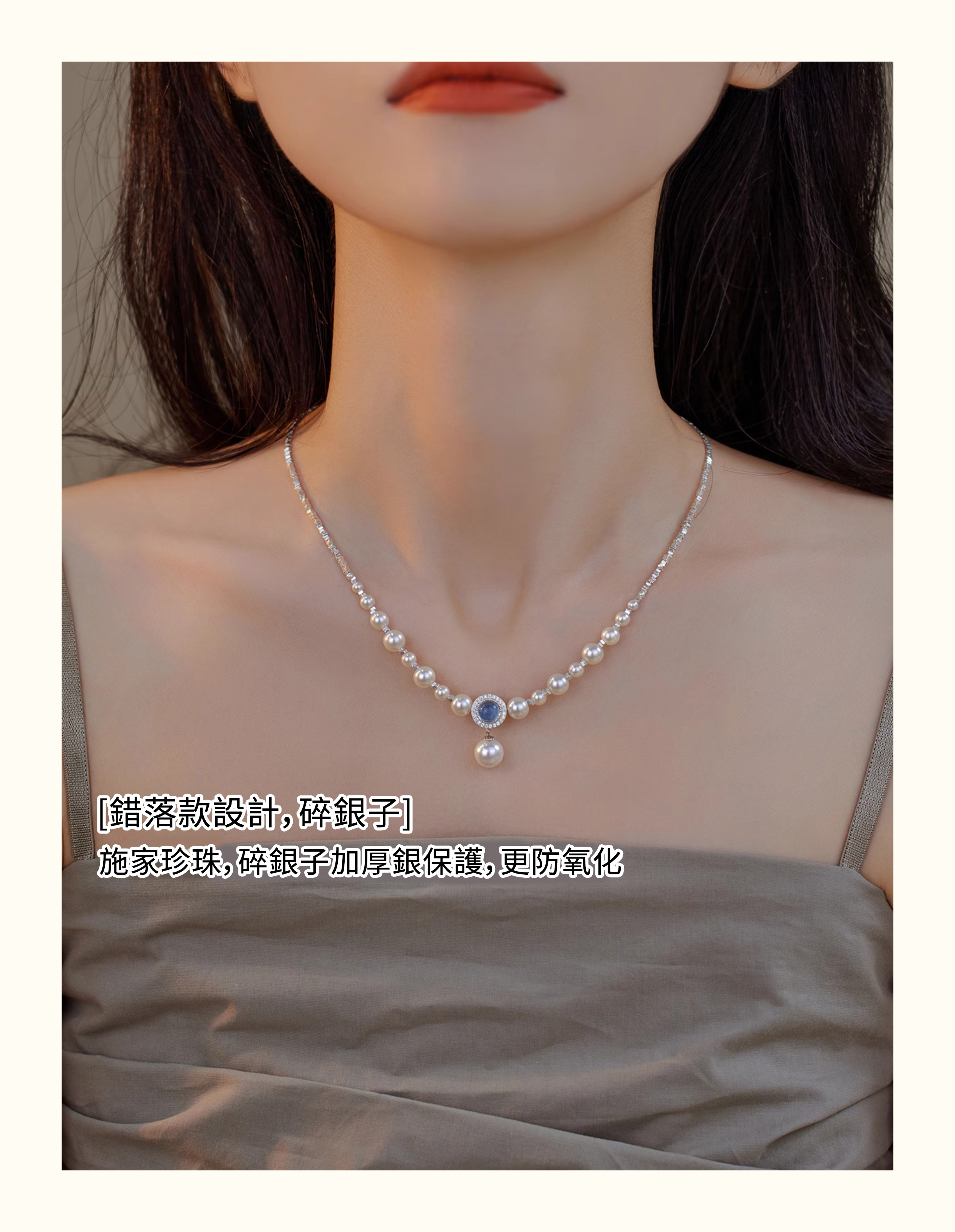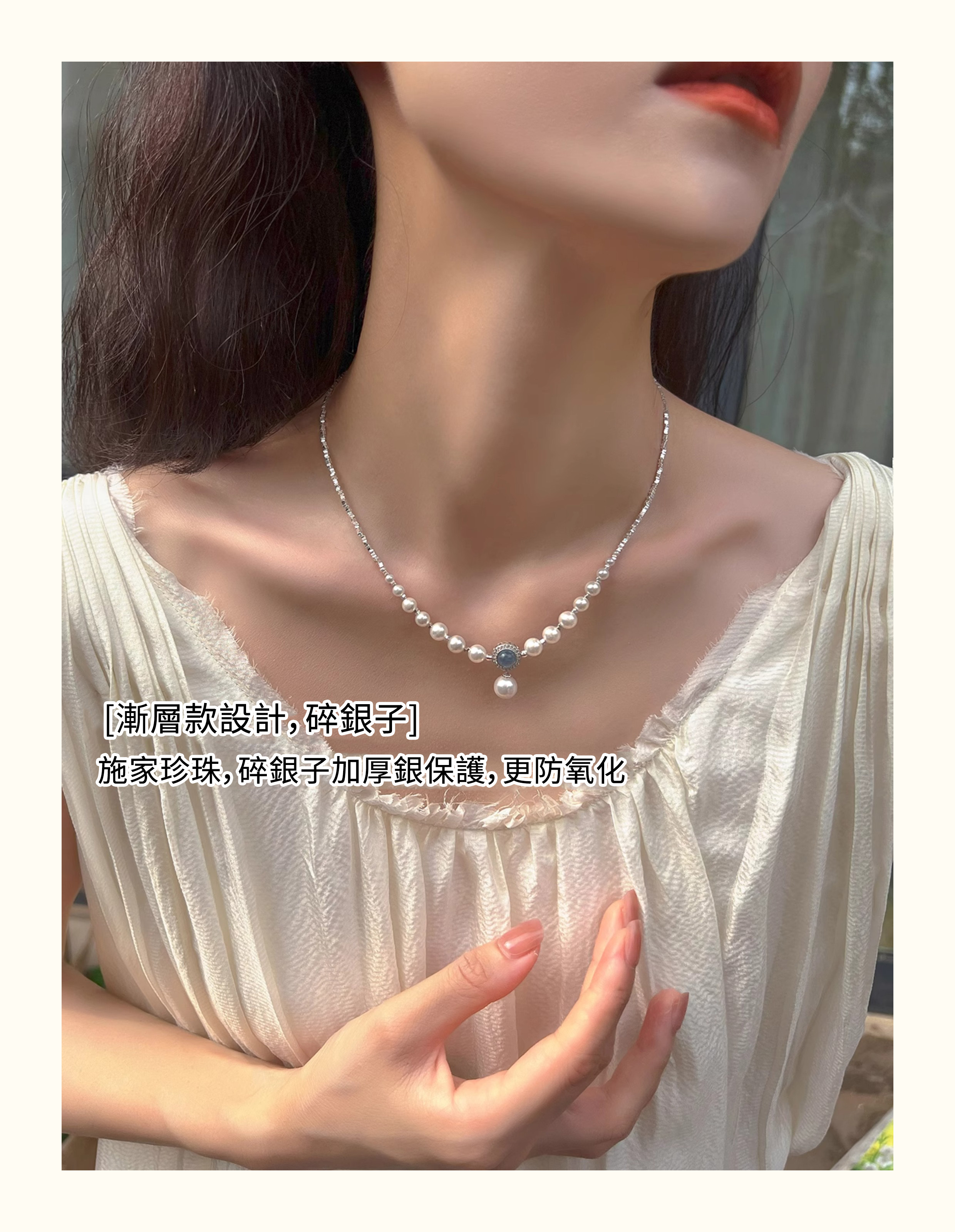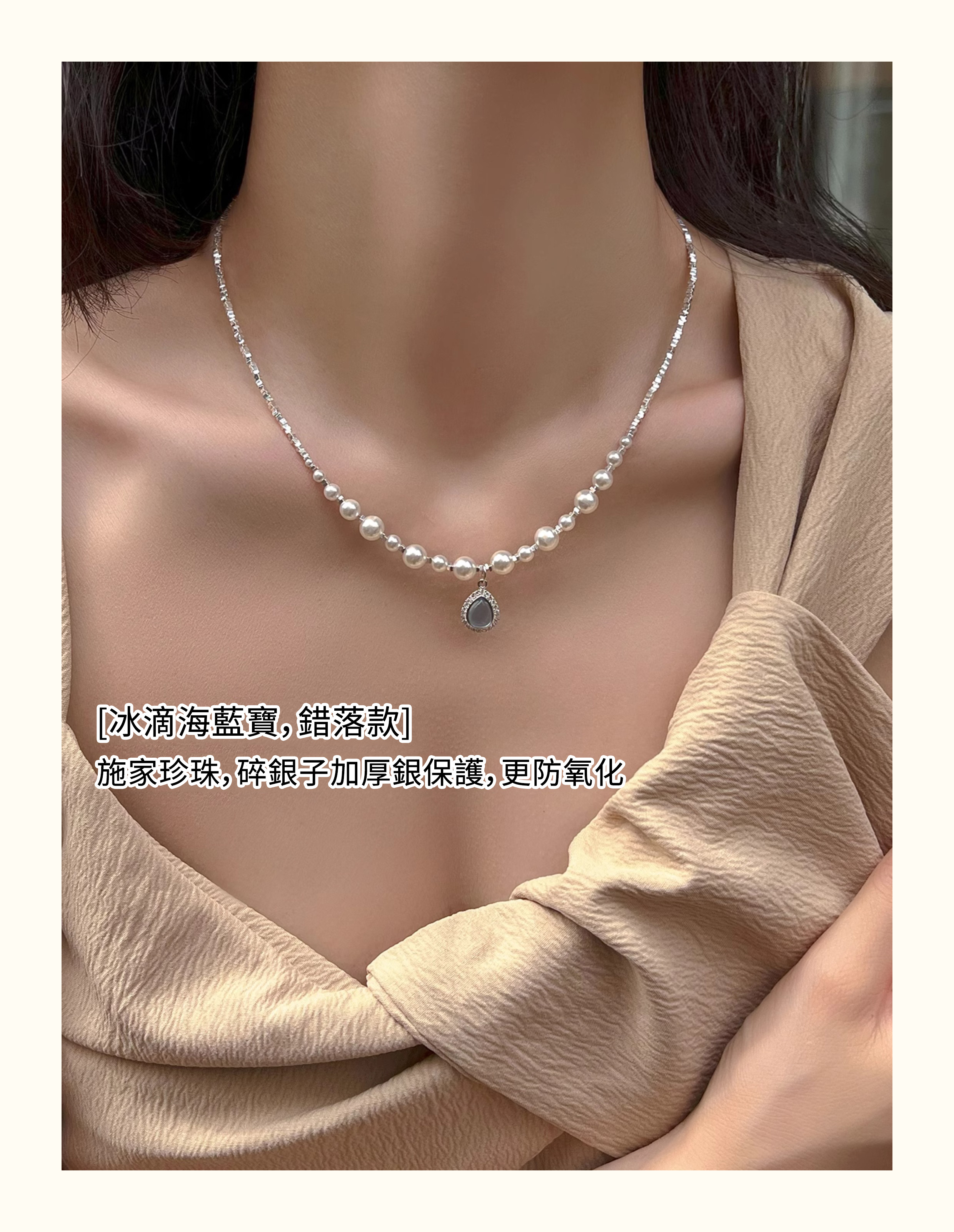 人魚眼淚🧜‍♀️海藍寶珍珠 S925純銀碎銀項錬