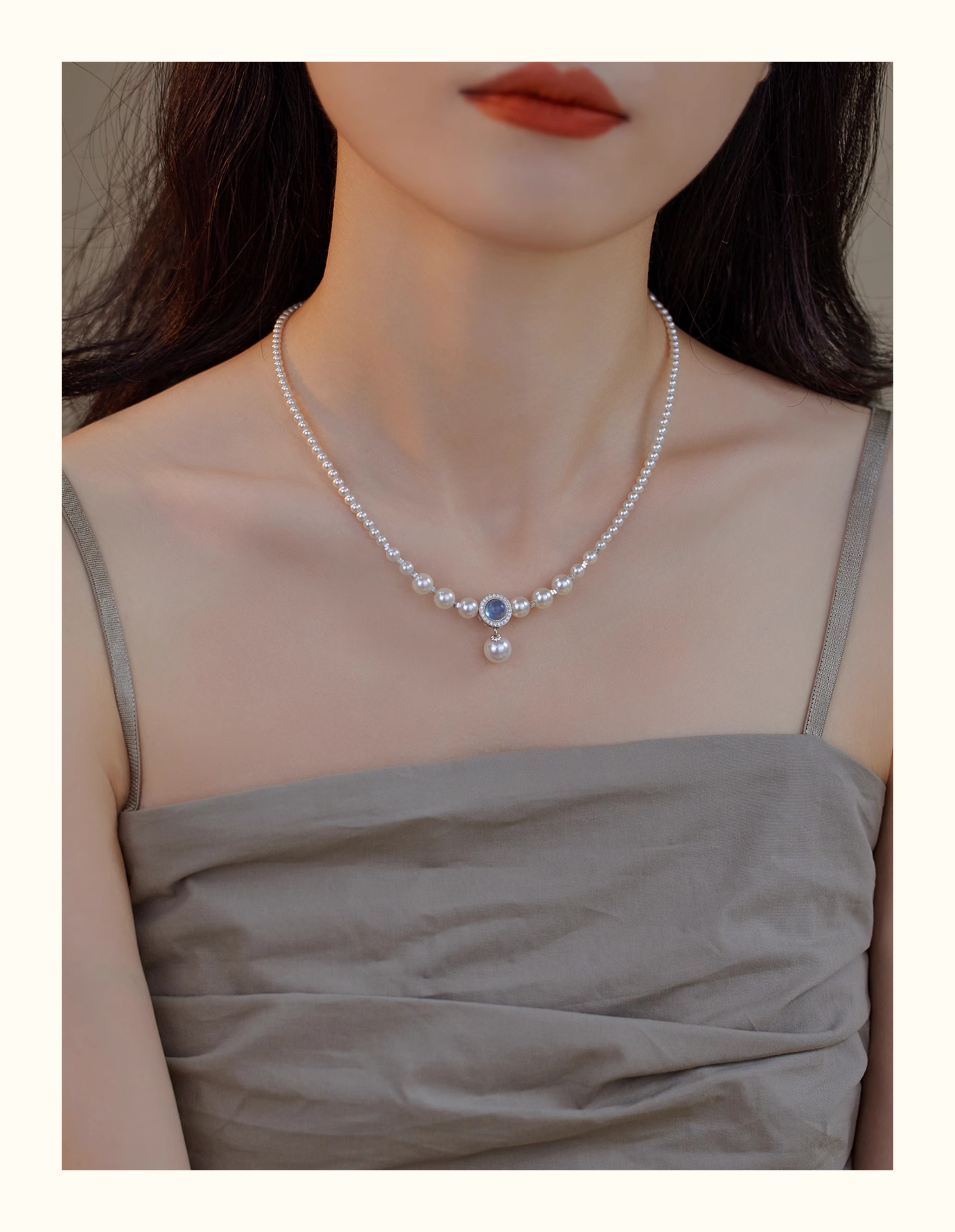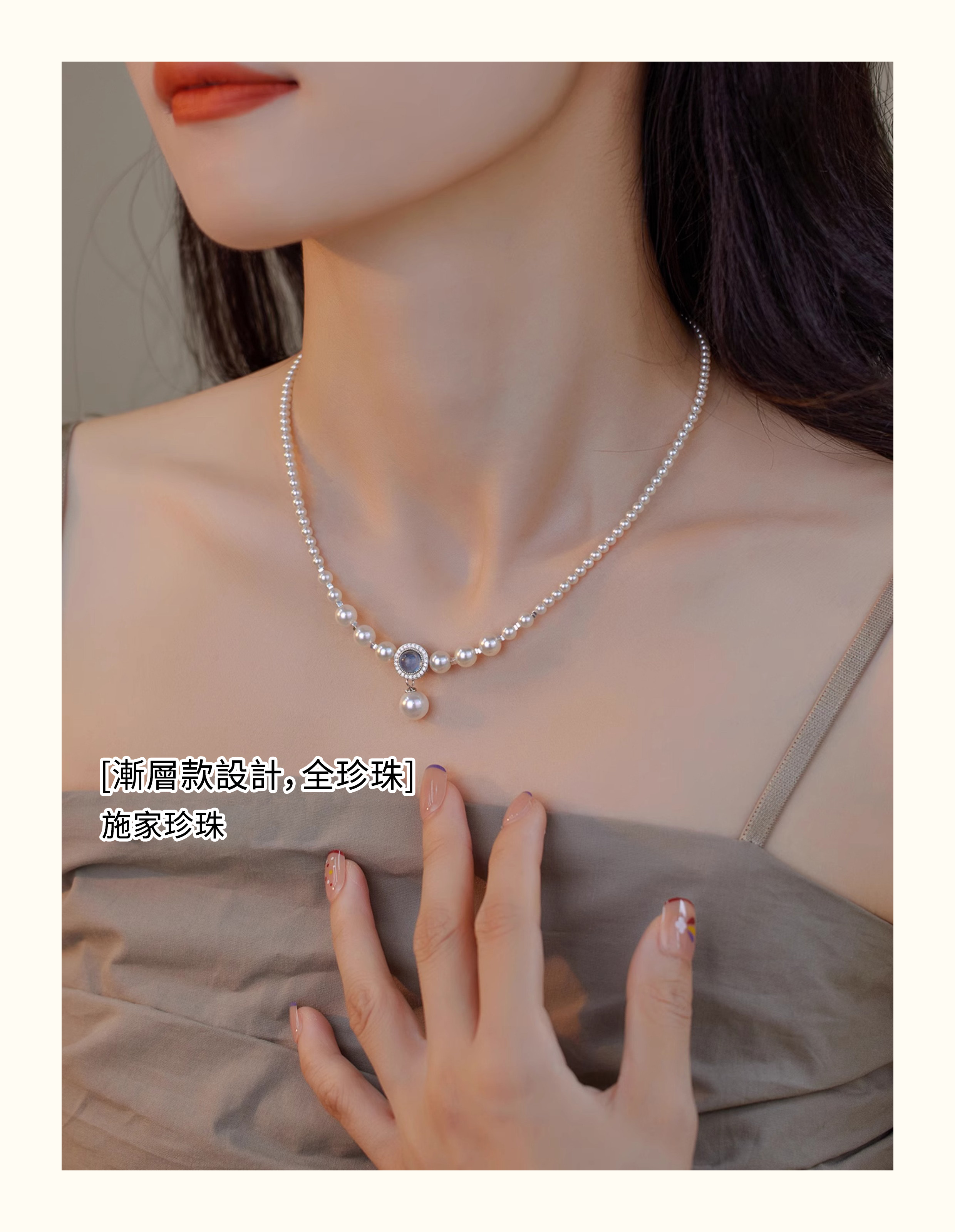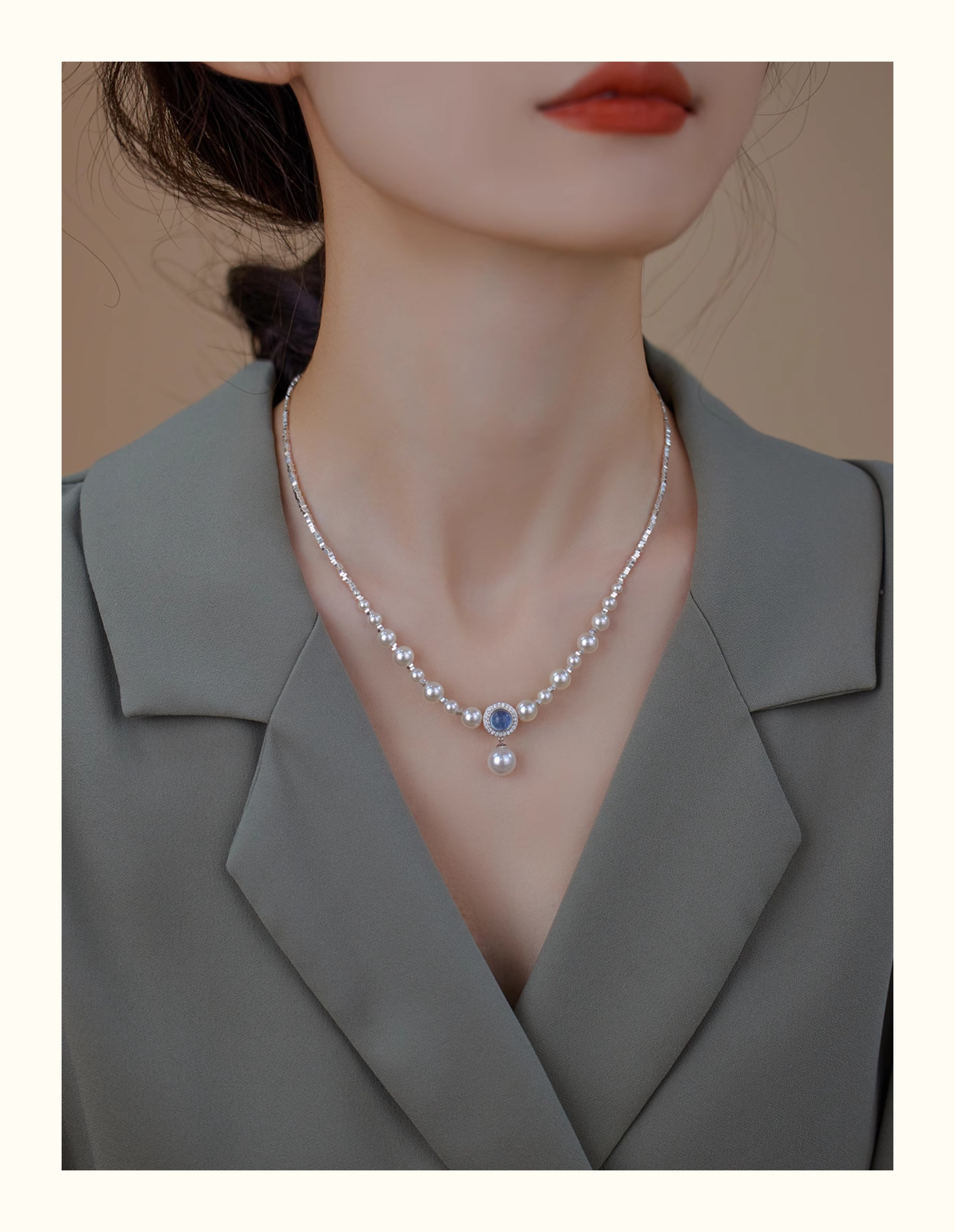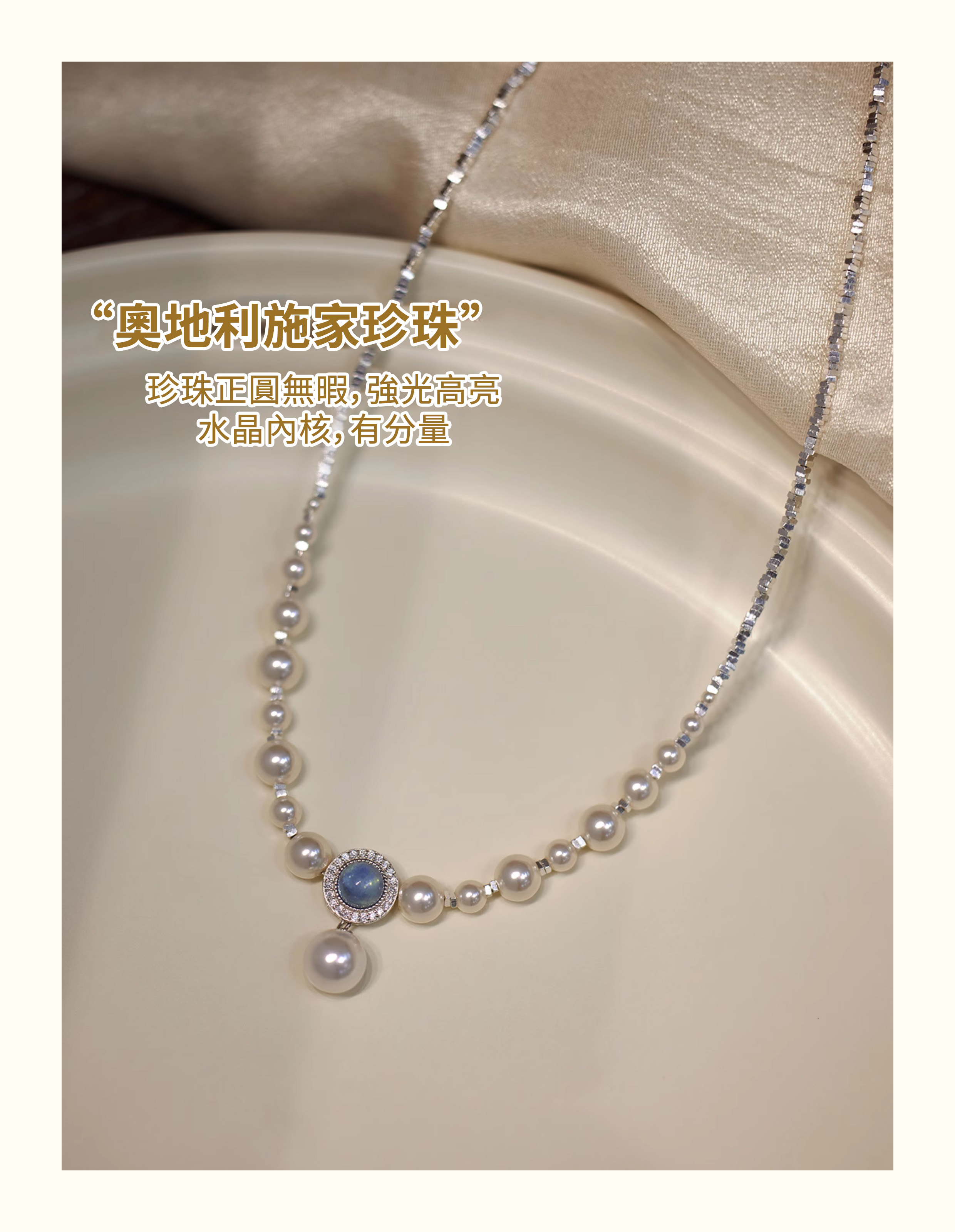 人魚眼淚🧜‍♀️海藍寶珍珠 S925純銀碎銀項錬