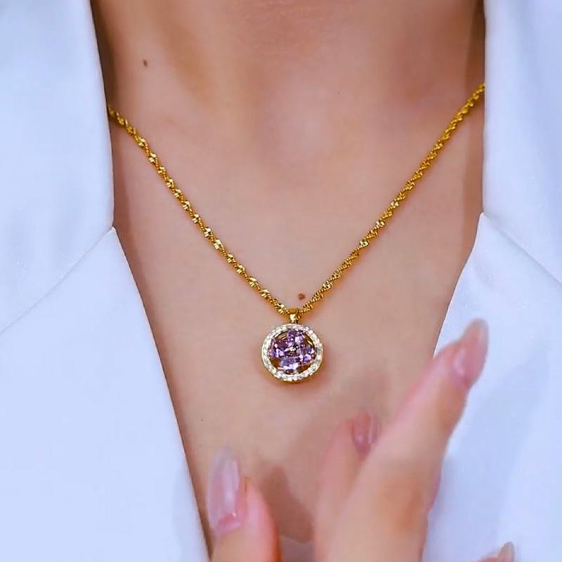 紫色水晶鋯石圈圈項錬