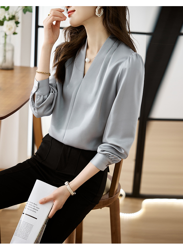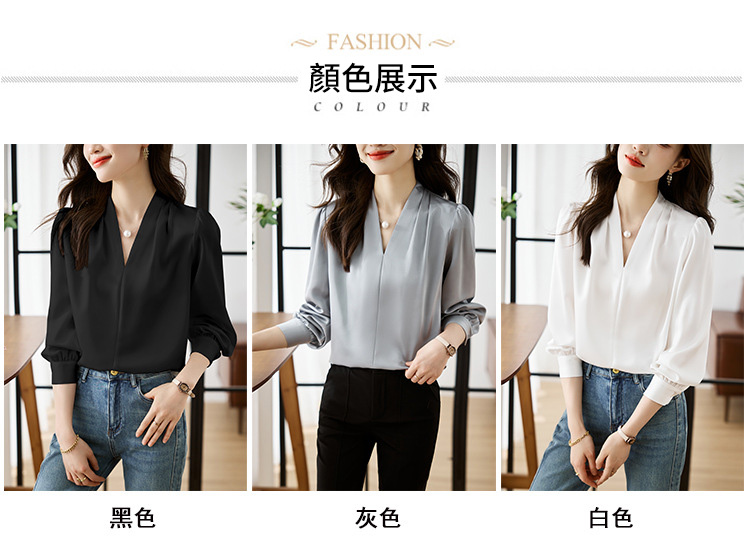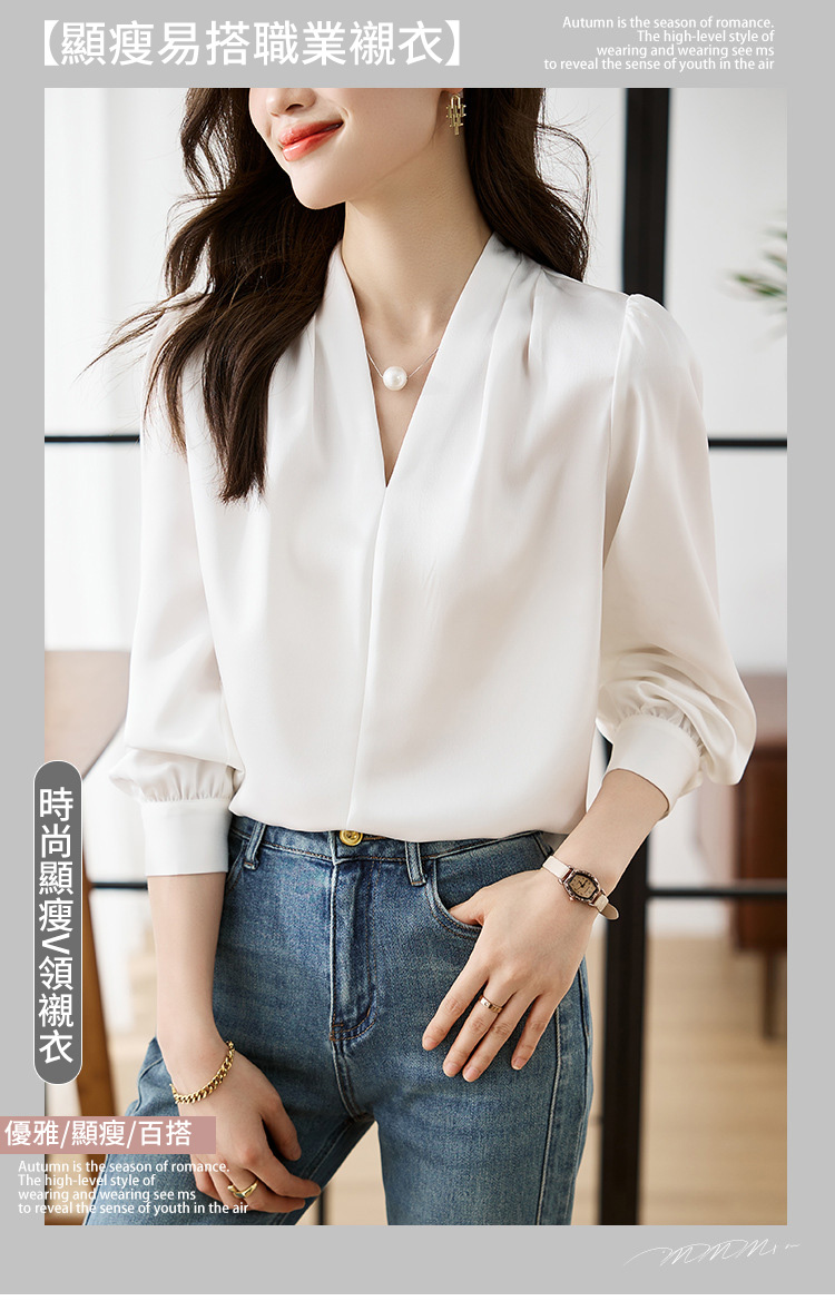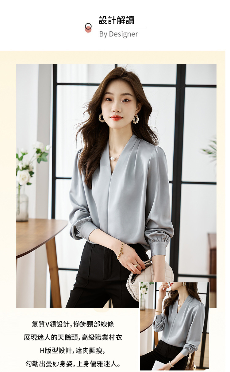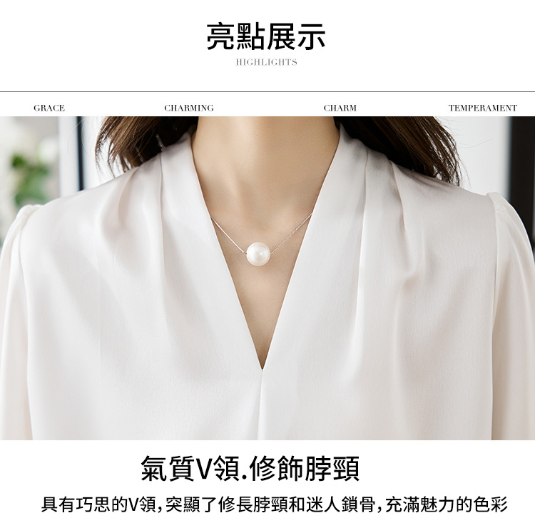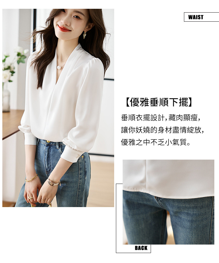 氣質V領通勤簡約雪紡襯衫