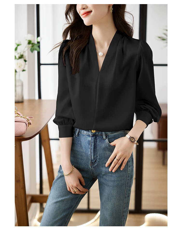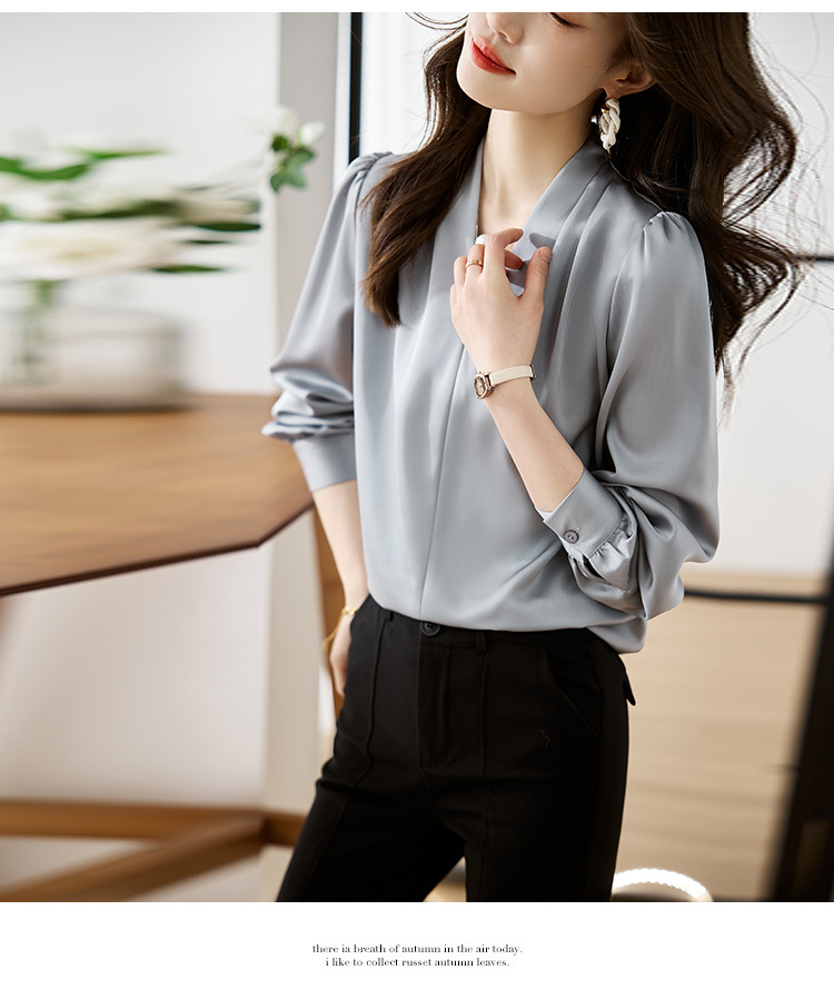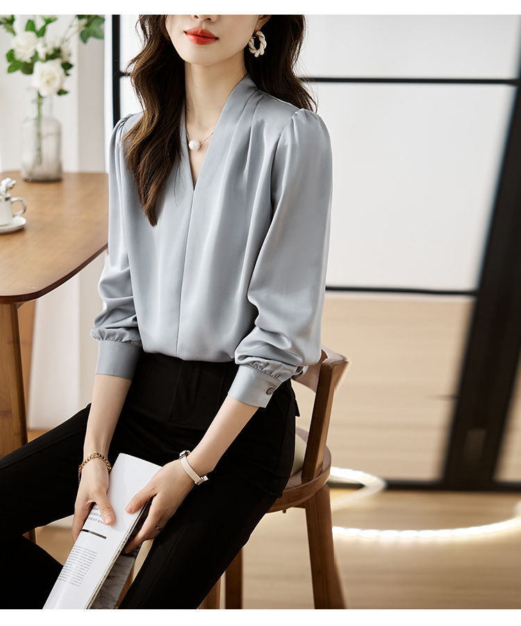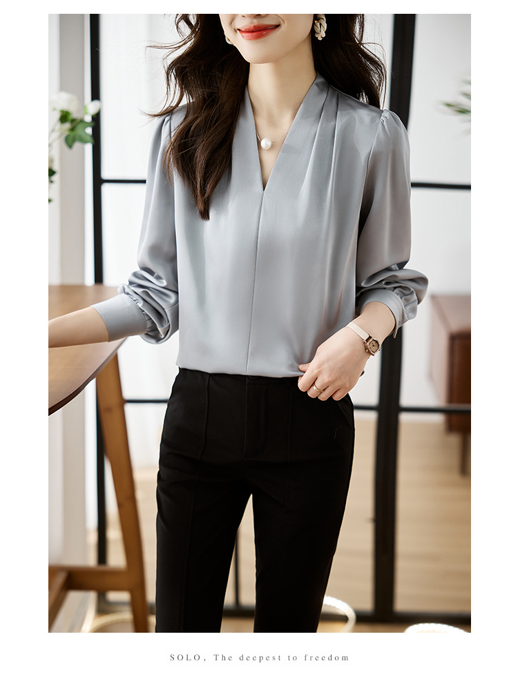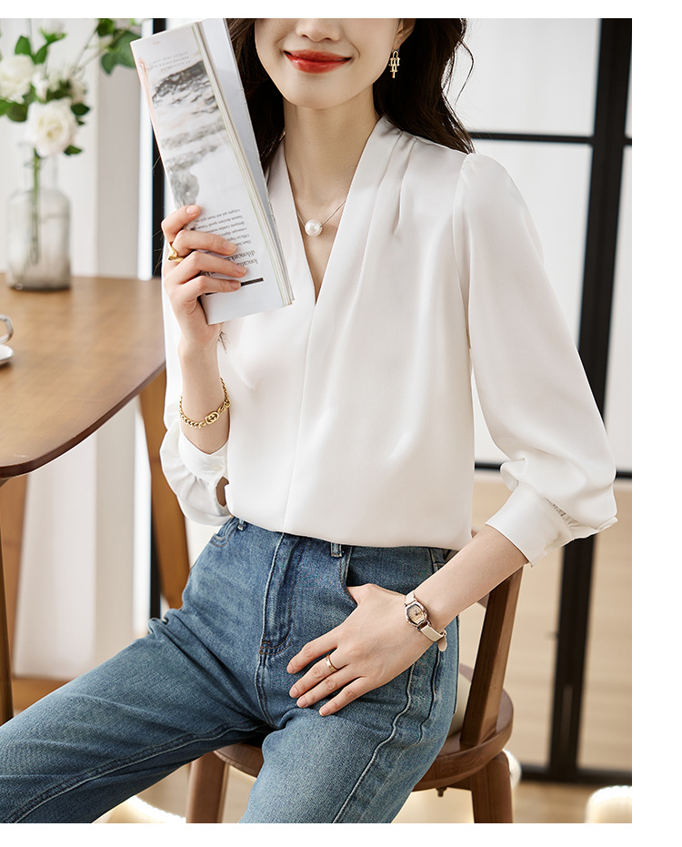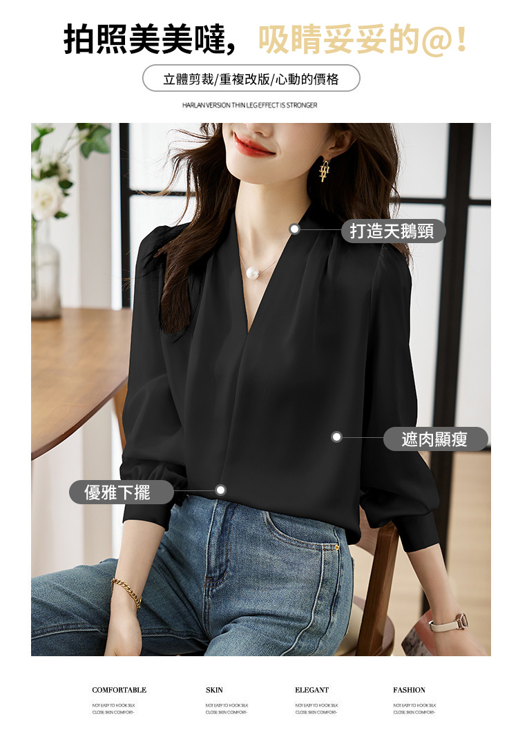 氣質V領通勤簡約雪紡襯衫