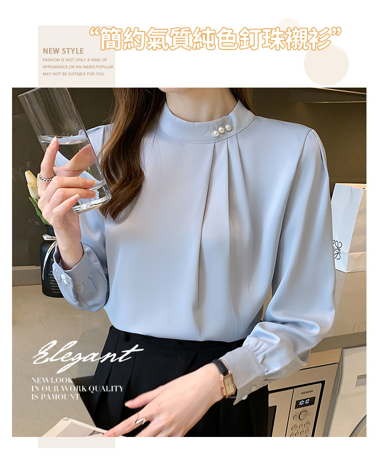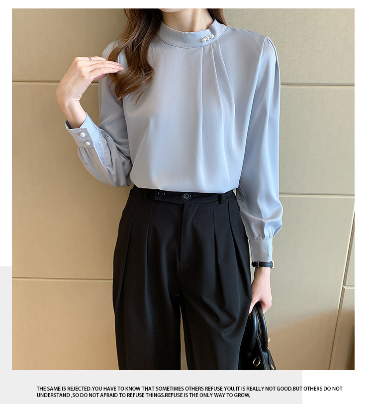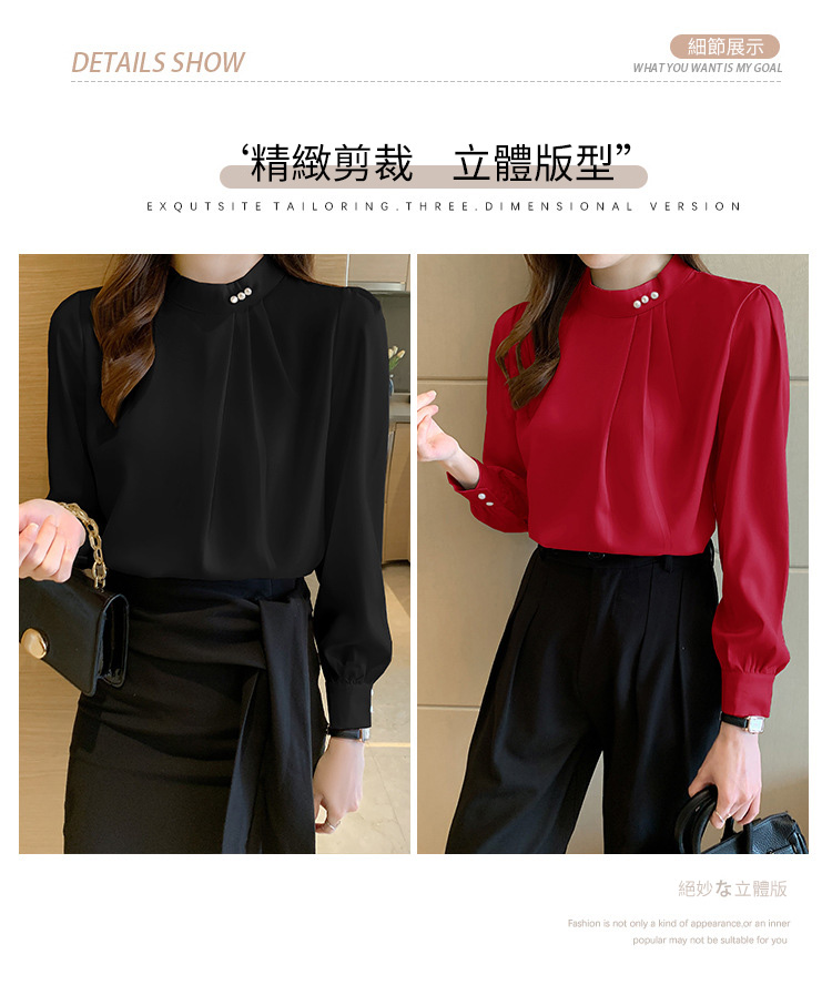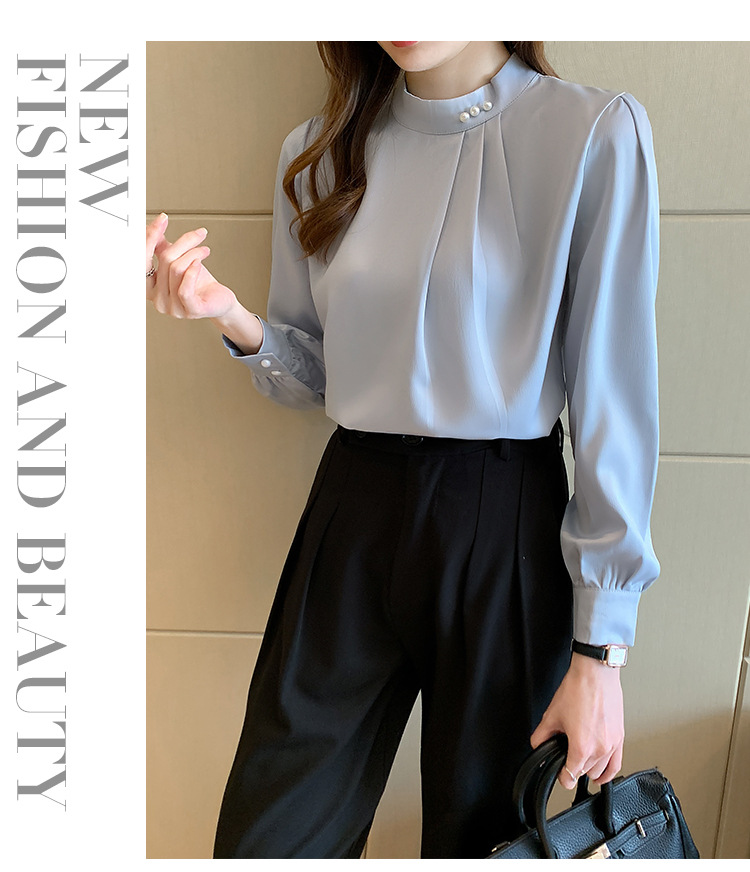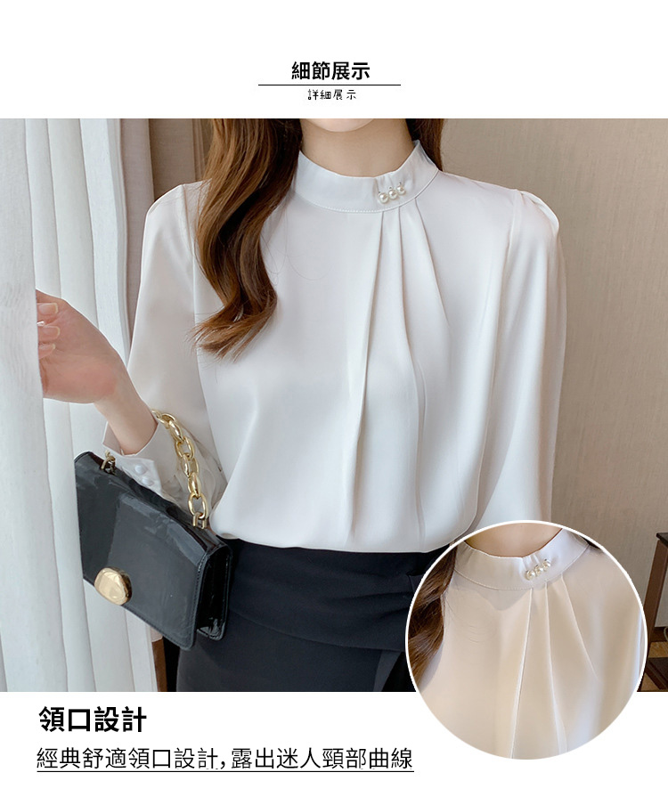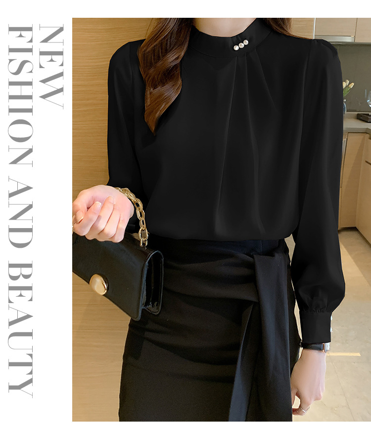 洋氣珍珠扣純色雪紡襯衫