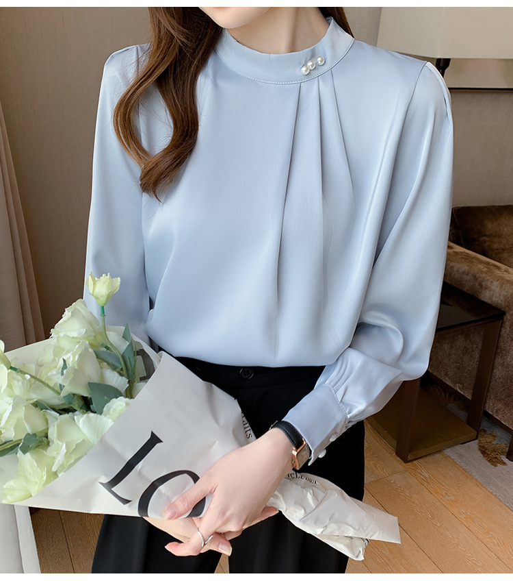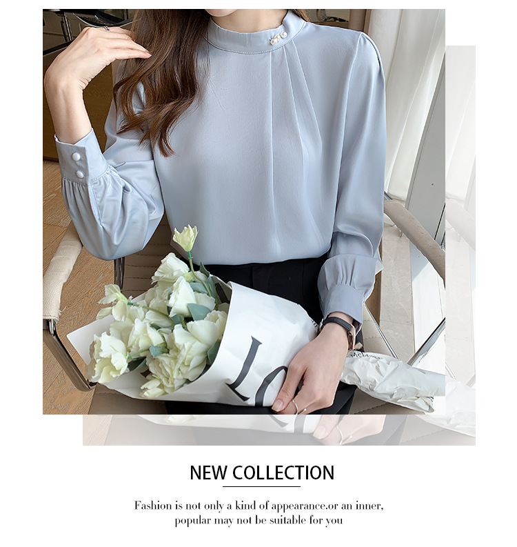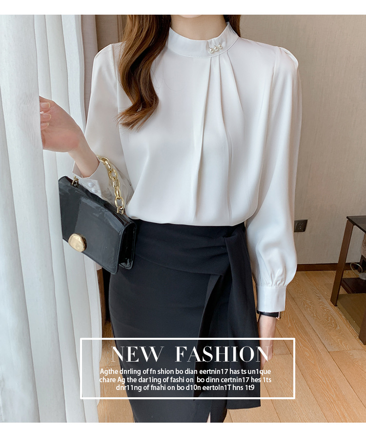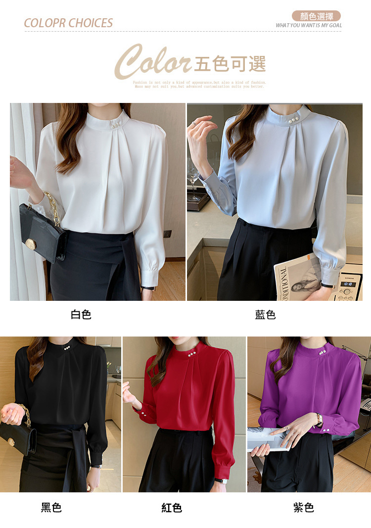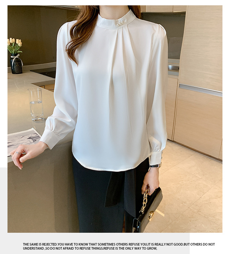 洋氣珍珠扣純色雪紡襯衫