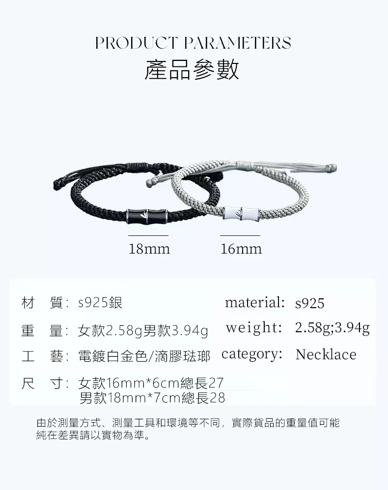 竹節情侶純銀手鍊手環