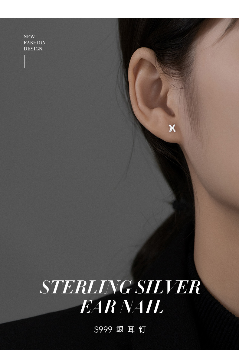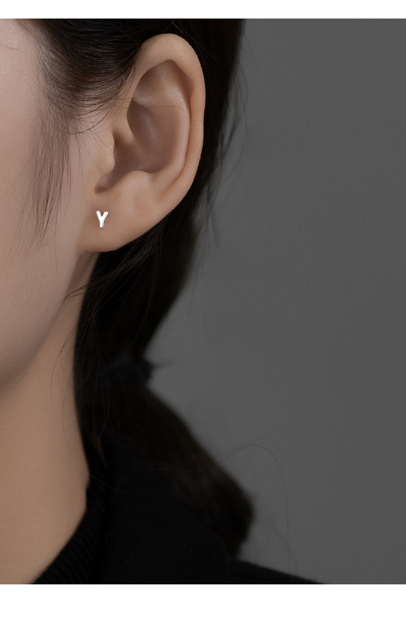 S999純銀字母耳釘 養耳洞情侶耳環