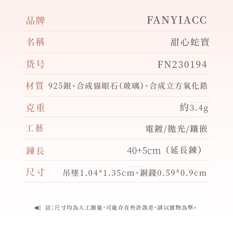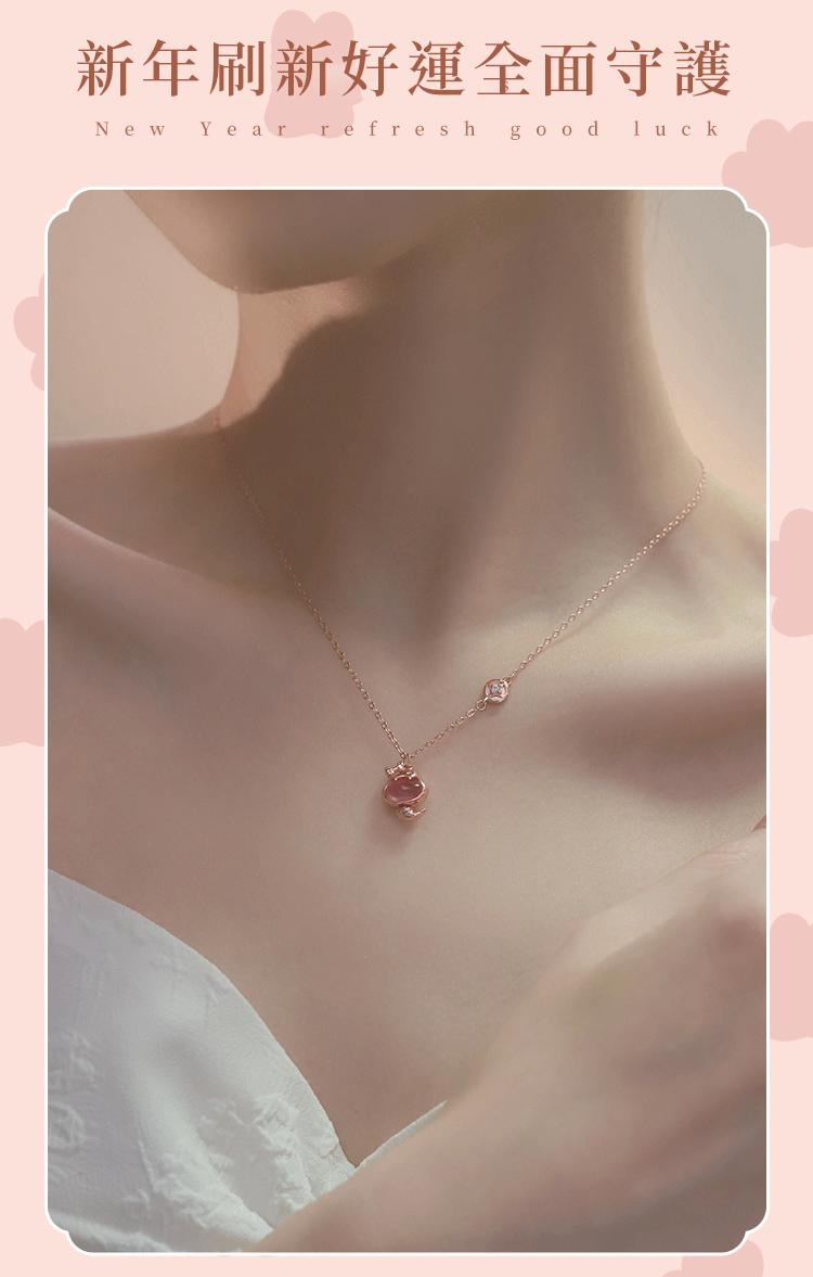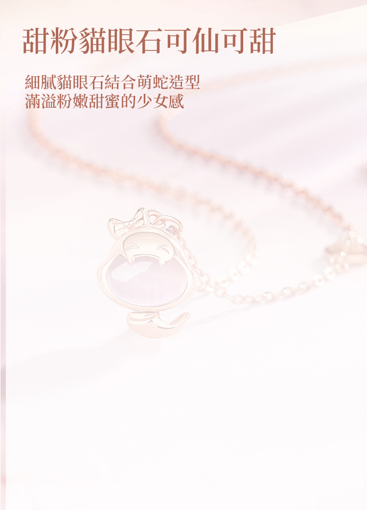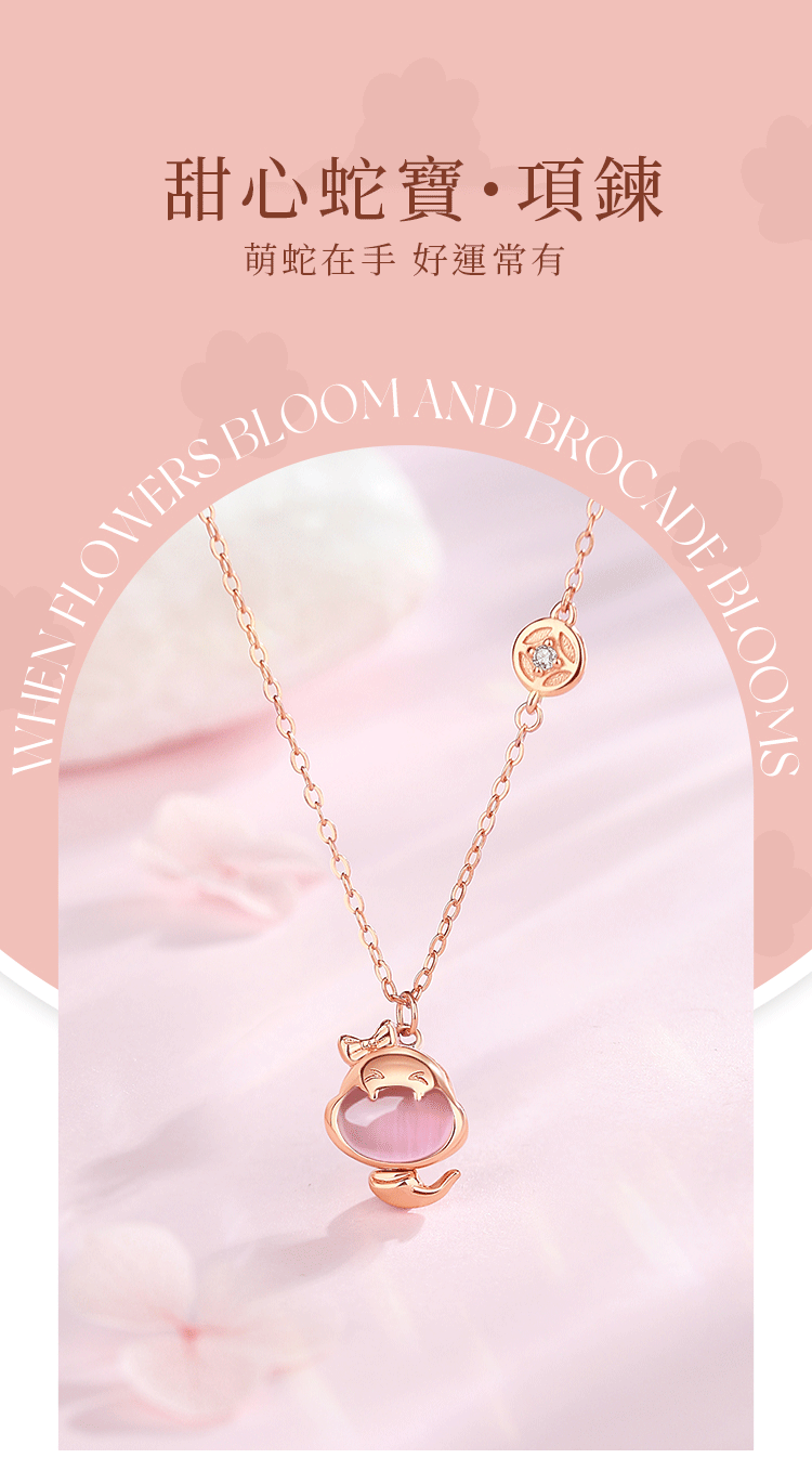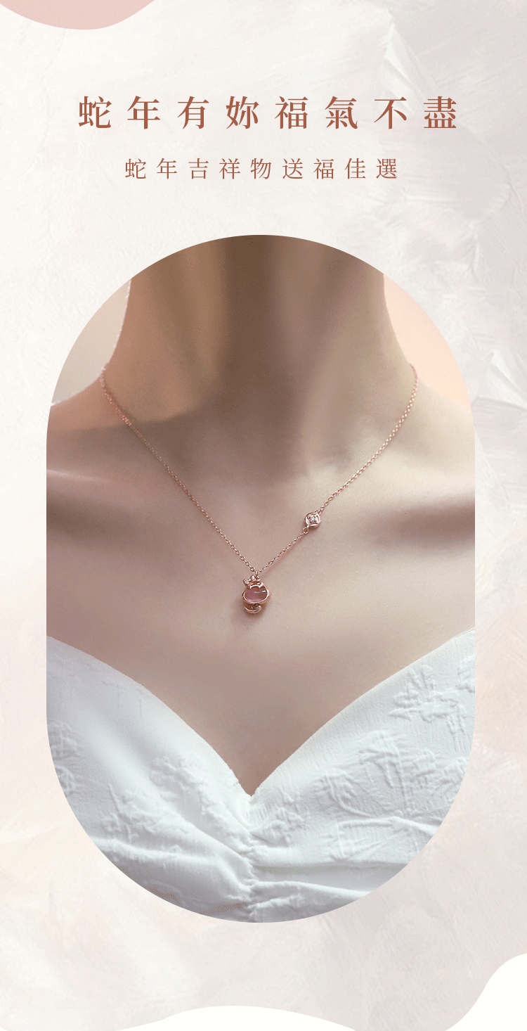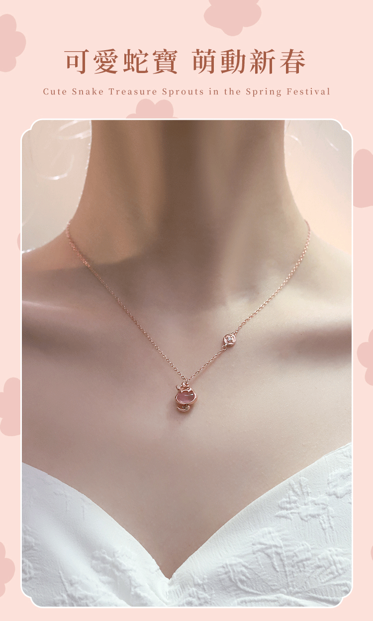 新款粉萌蛇好運純銀項鍊