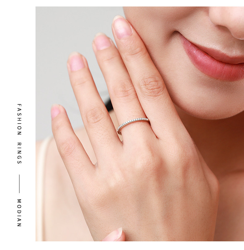 純銀設計感排鑽個性戒指