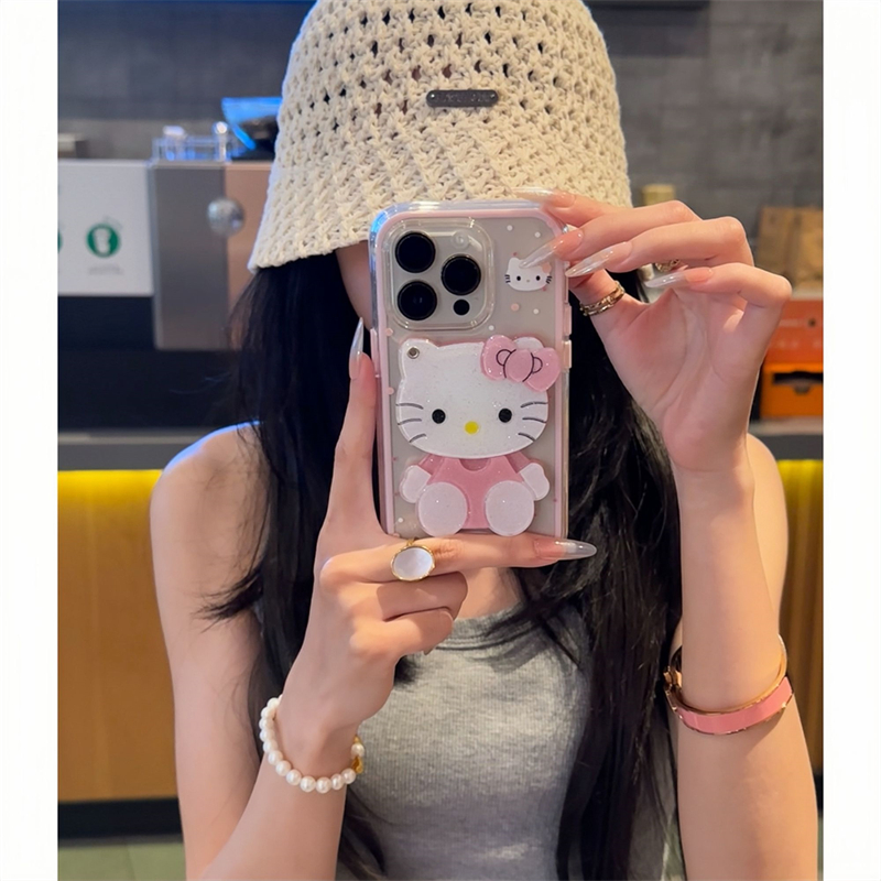粉色kitty鏡子貼件 可愛凱蒂貓軟殼 iPhone保護殼
