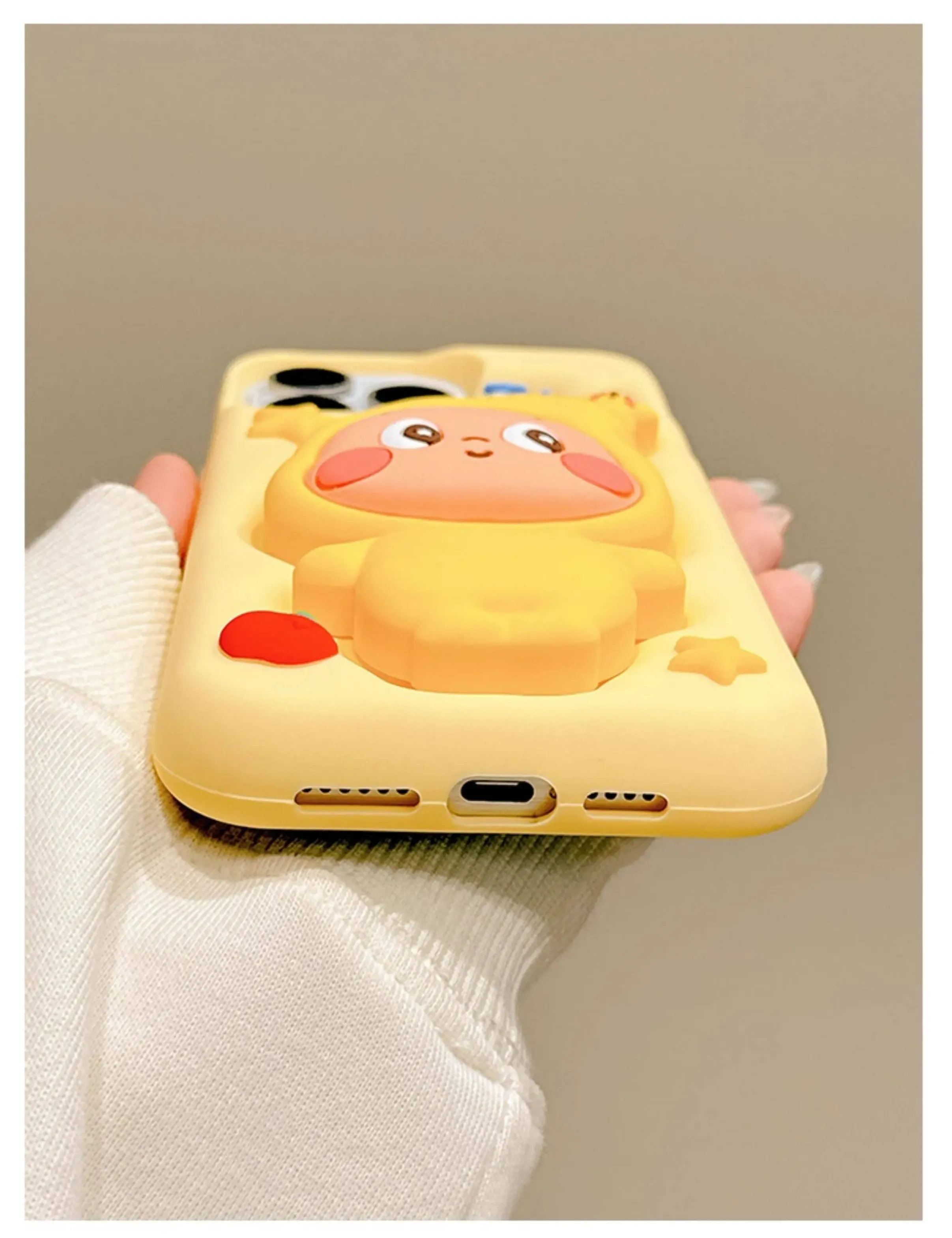 立體卡通奶黃色星星人支架保護殼