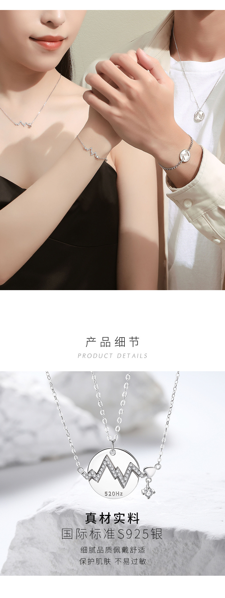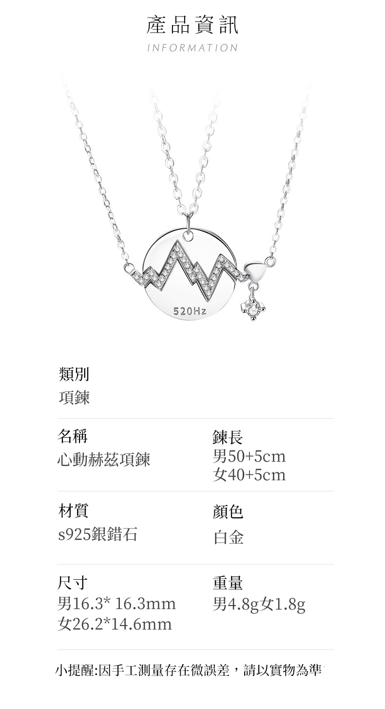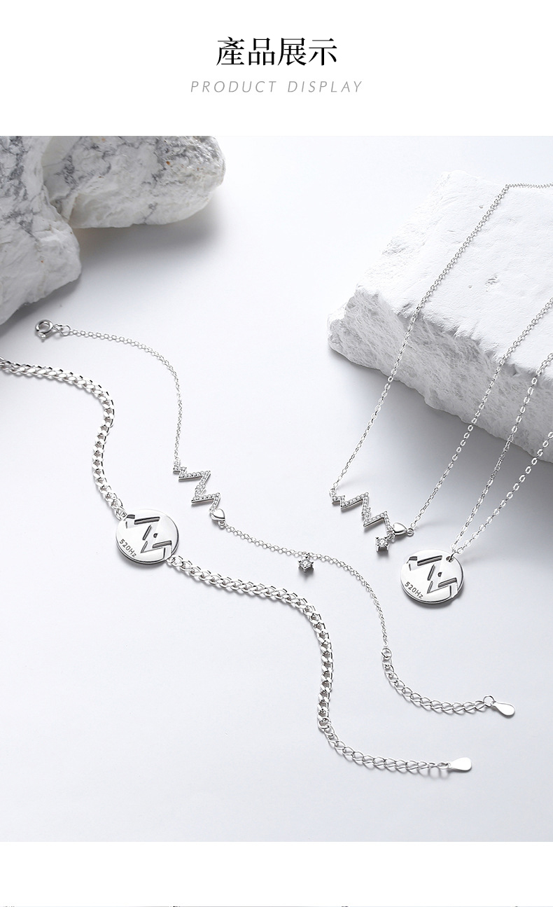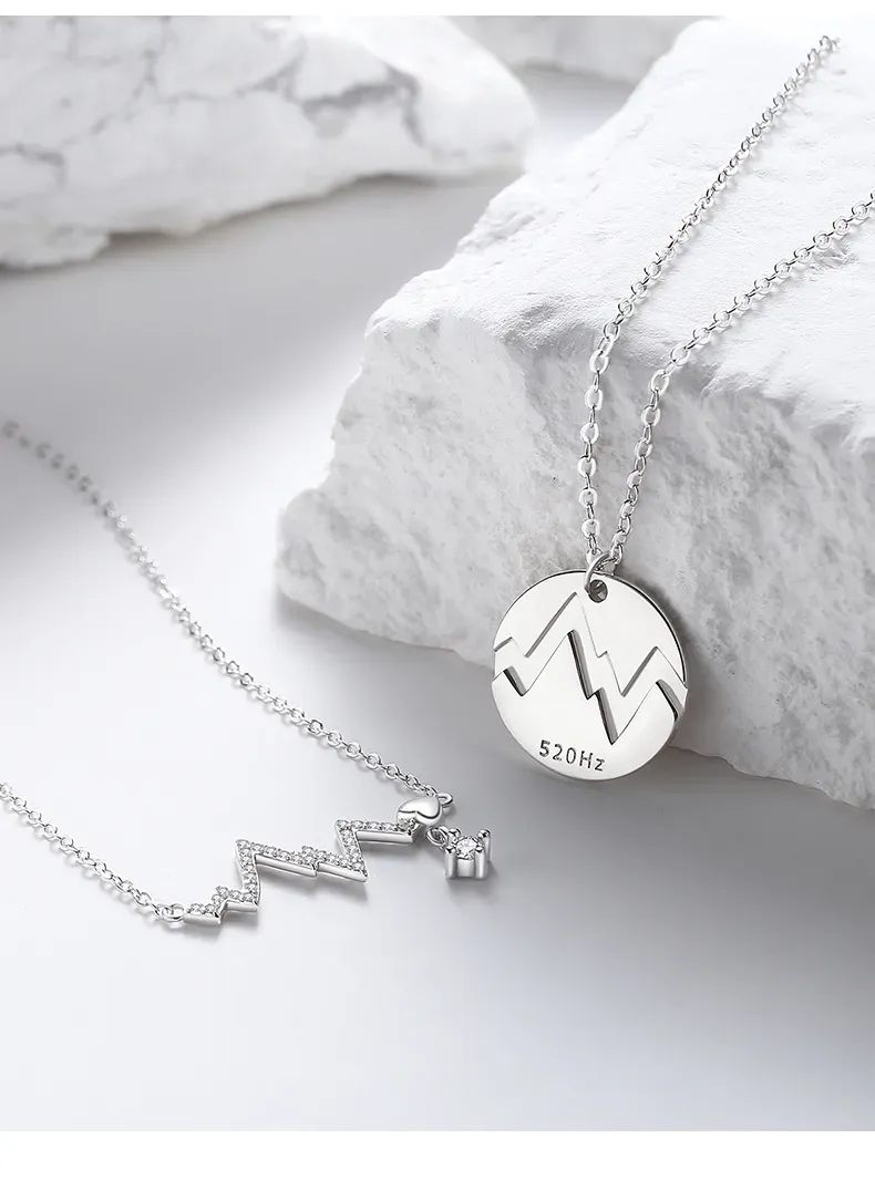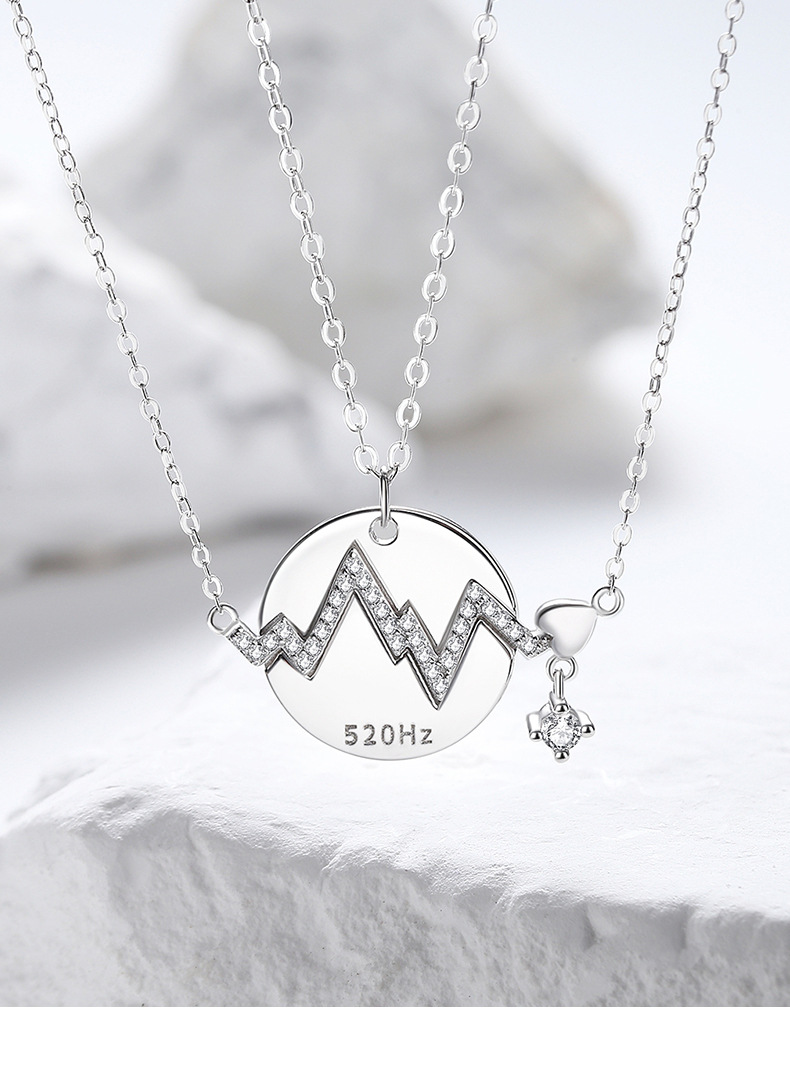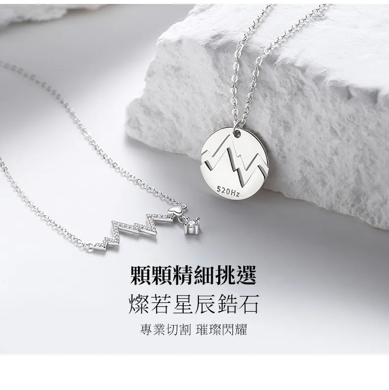 520赫茲情侶項鍊純銀 愛心電圖鎖骨錬