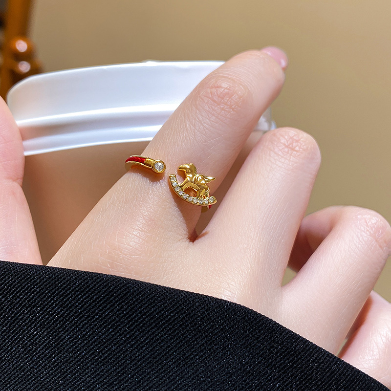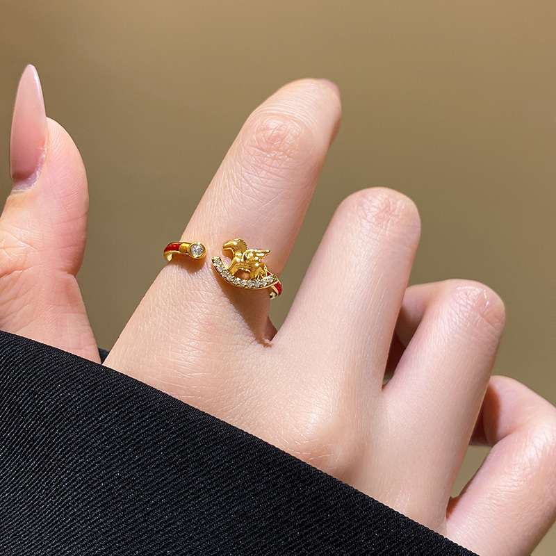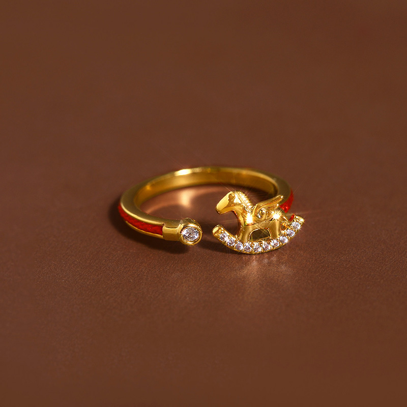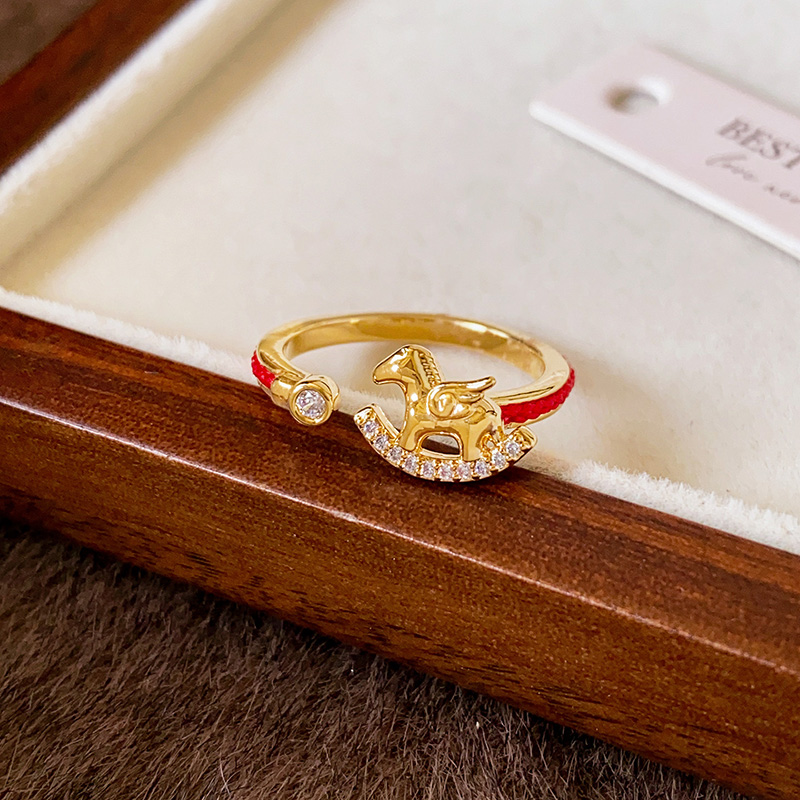 金色小馬紅繩戒指【可調節尺寸】