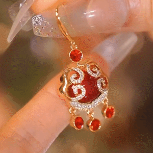 紅色平安鎖鋯石耳環