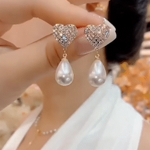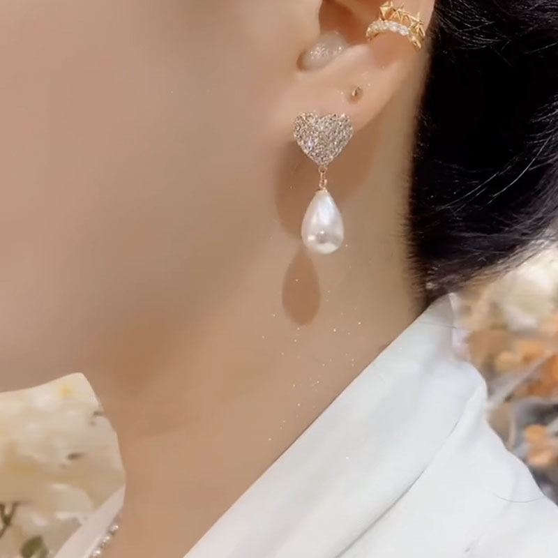 法式滿鑽愛心珍珠耳環