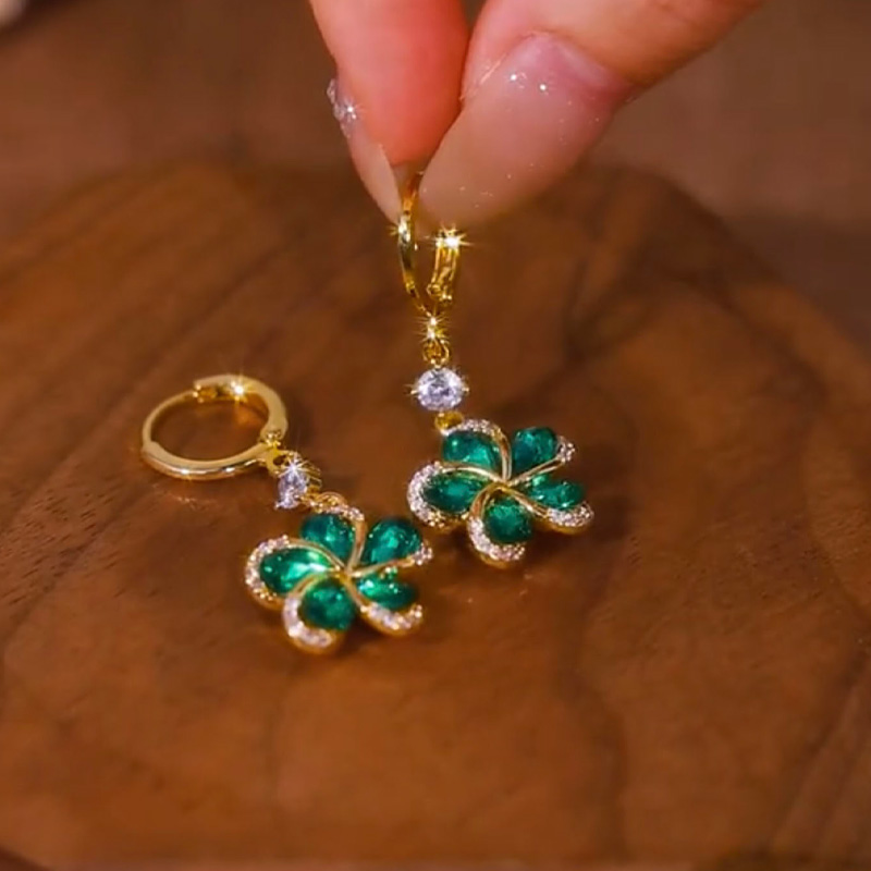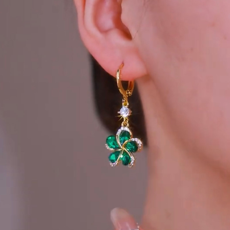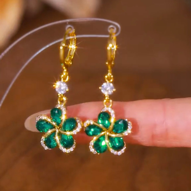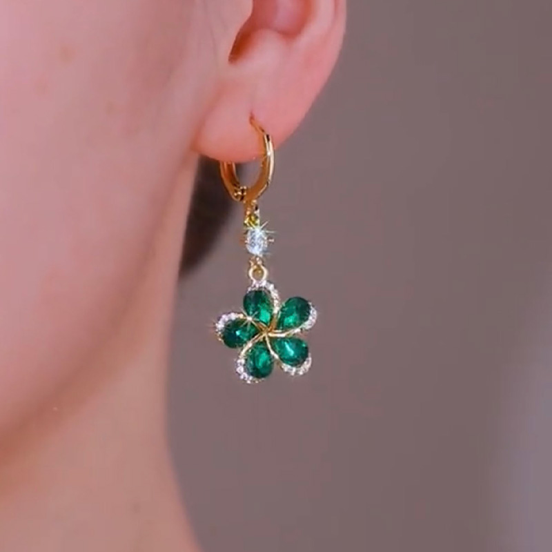 綠色花朵鋯石耳環