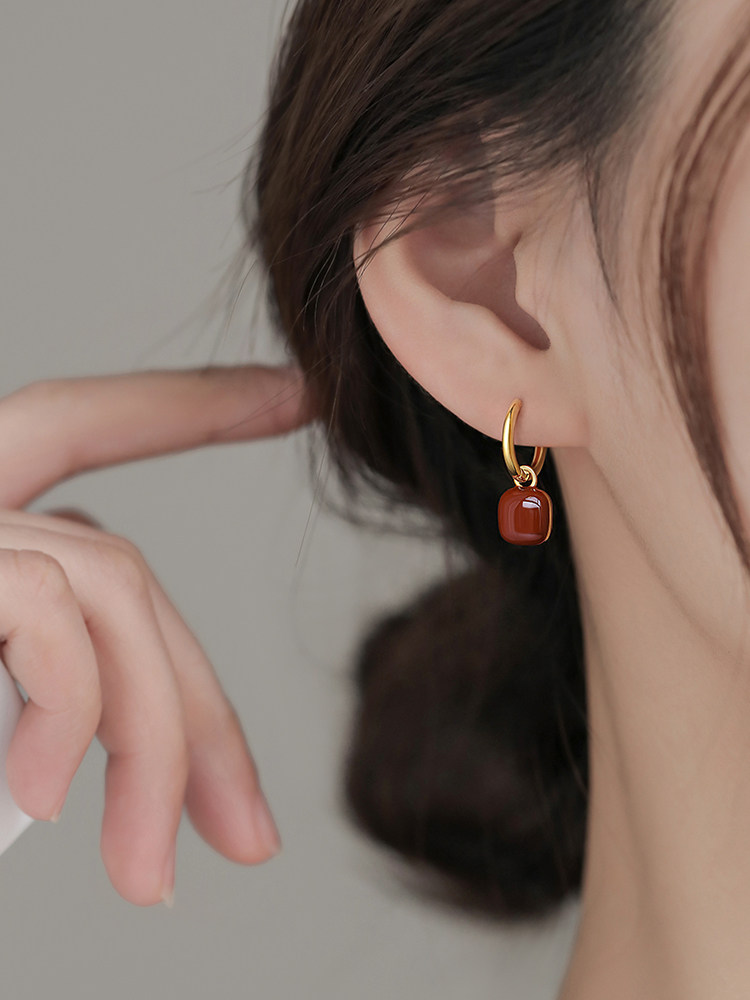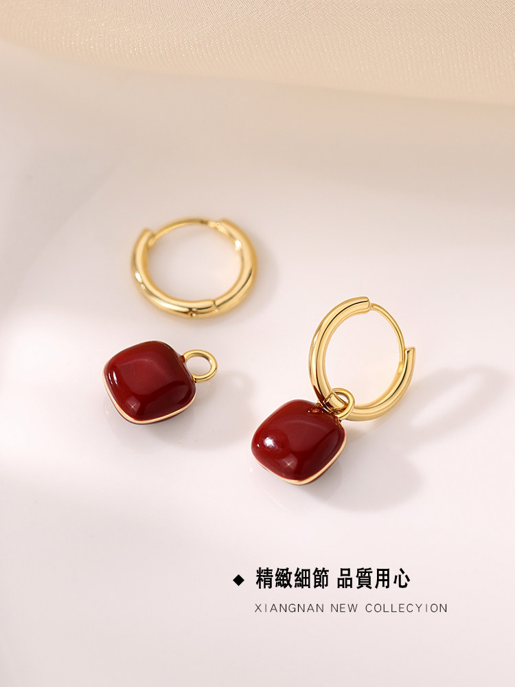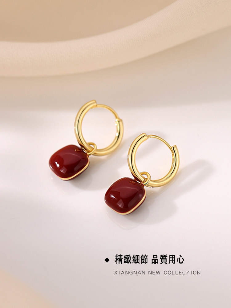 紅色&牛油果綠方塊耳扣耳環