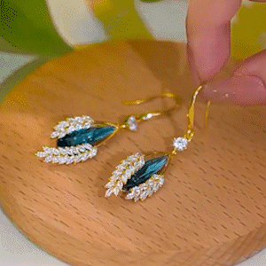 綠色麥穗長款流蘇耳環