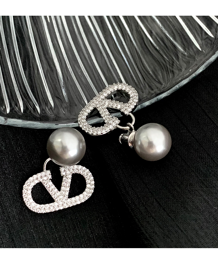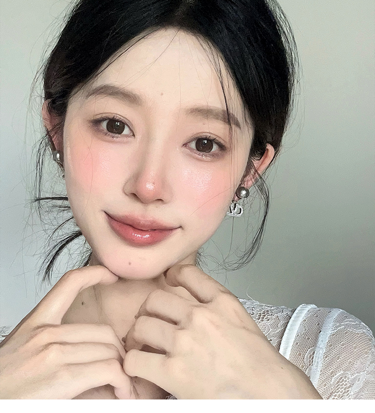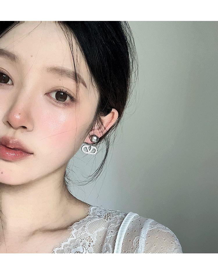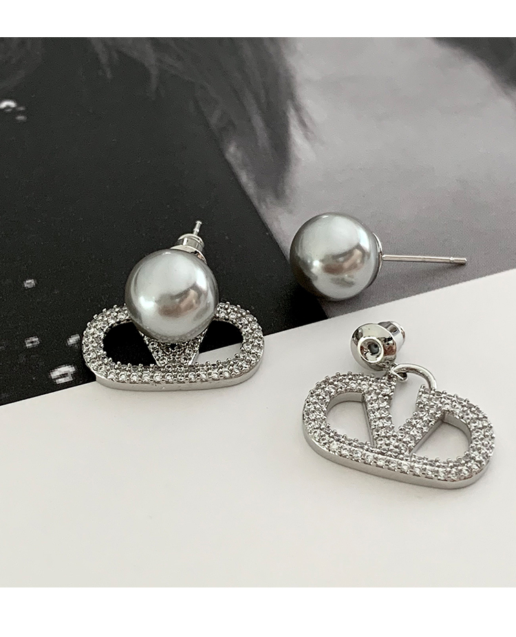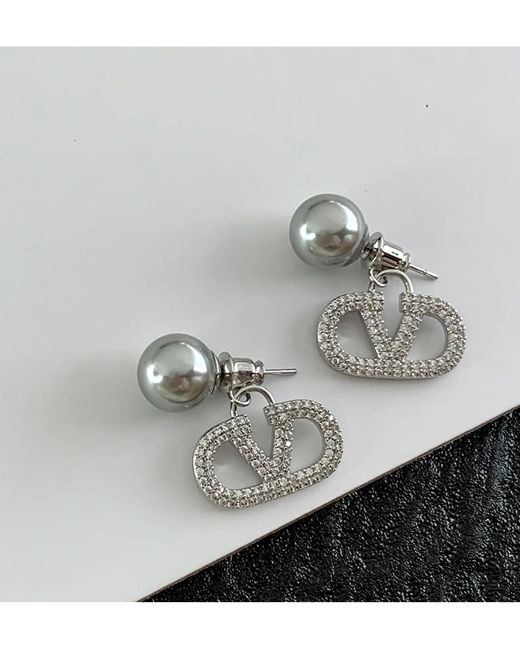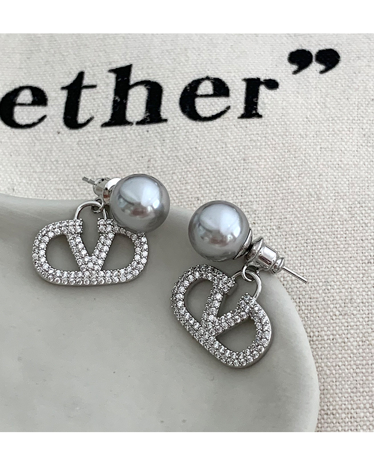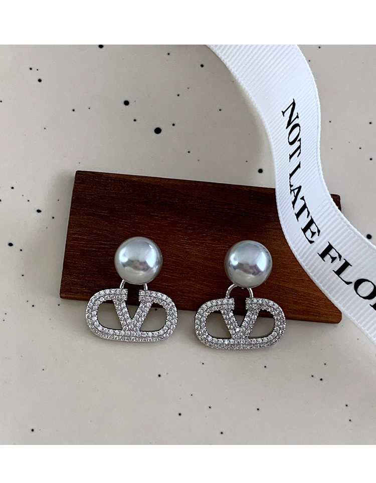 閃耀奪目 | 滿鑽字母V字珍珠耳環