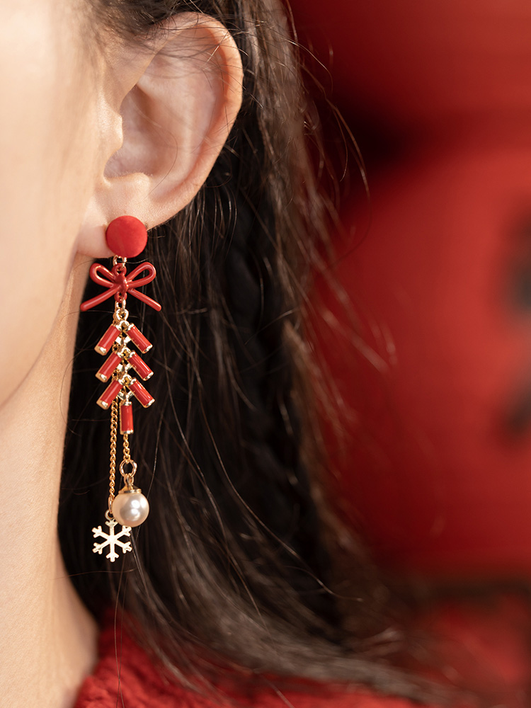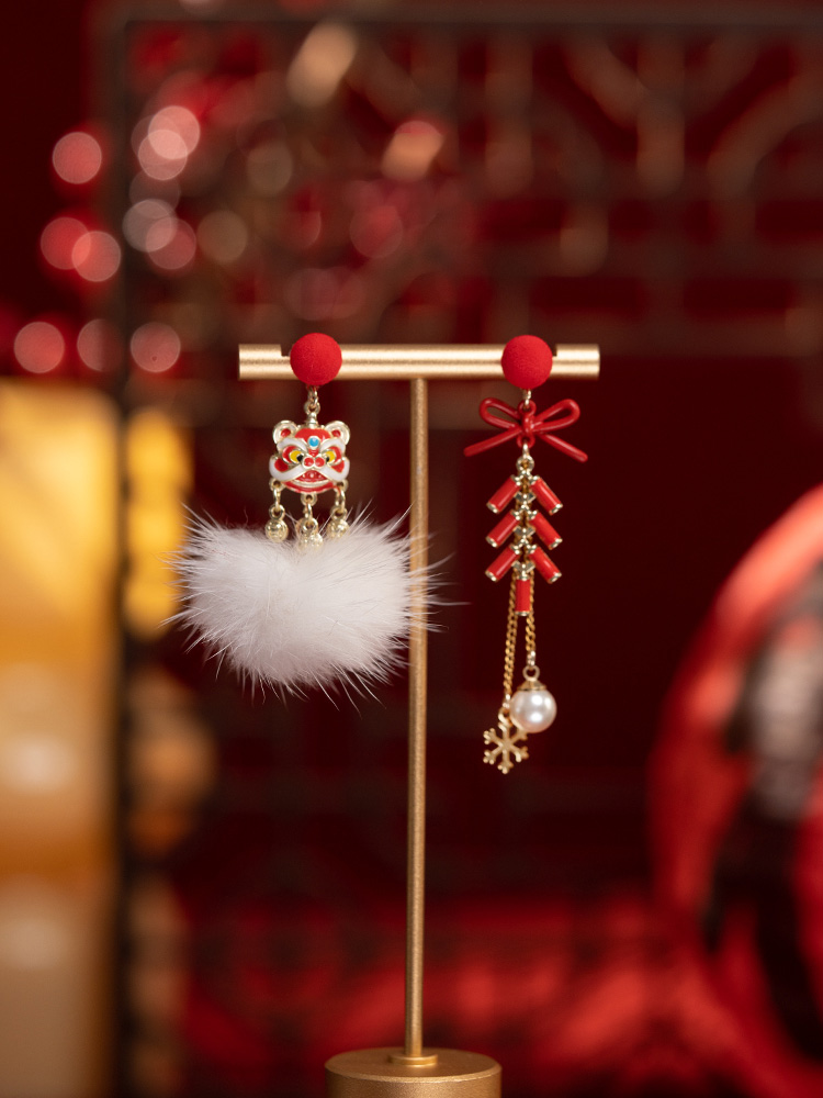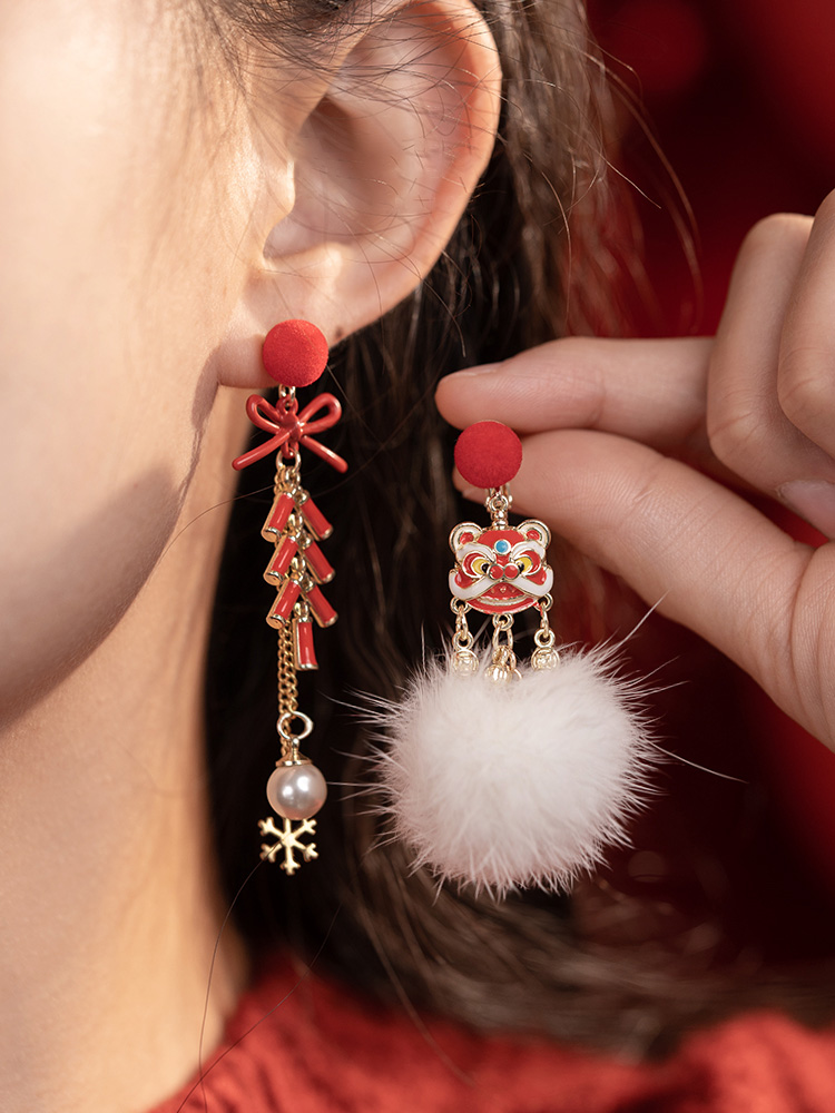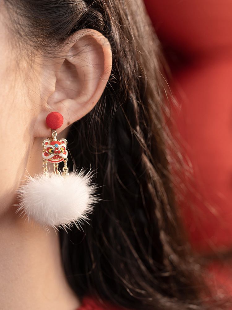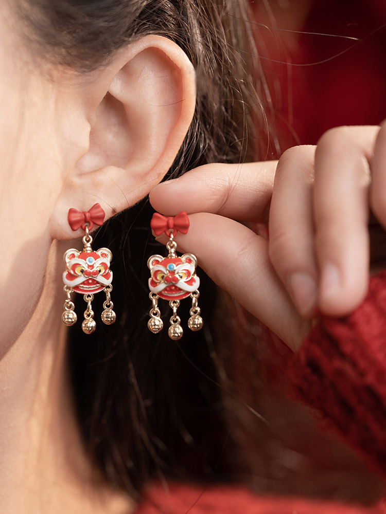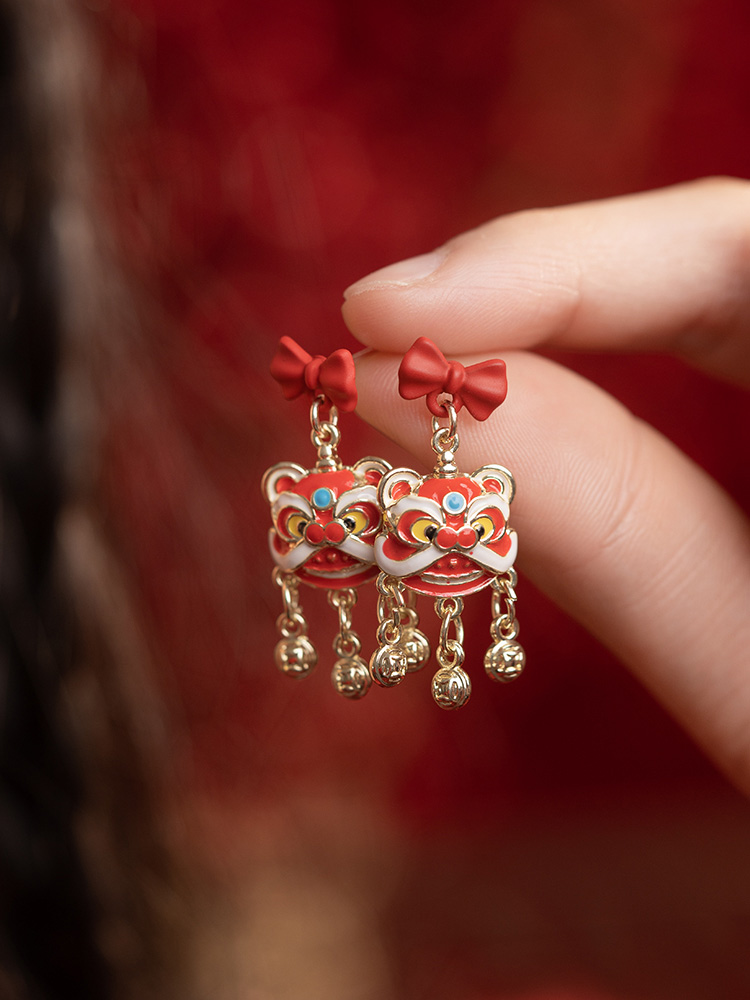 新年喜慶醒獅鈴鐺耳環