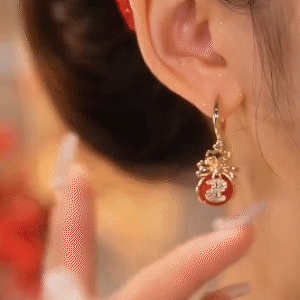 紅色招財錢袋耳環