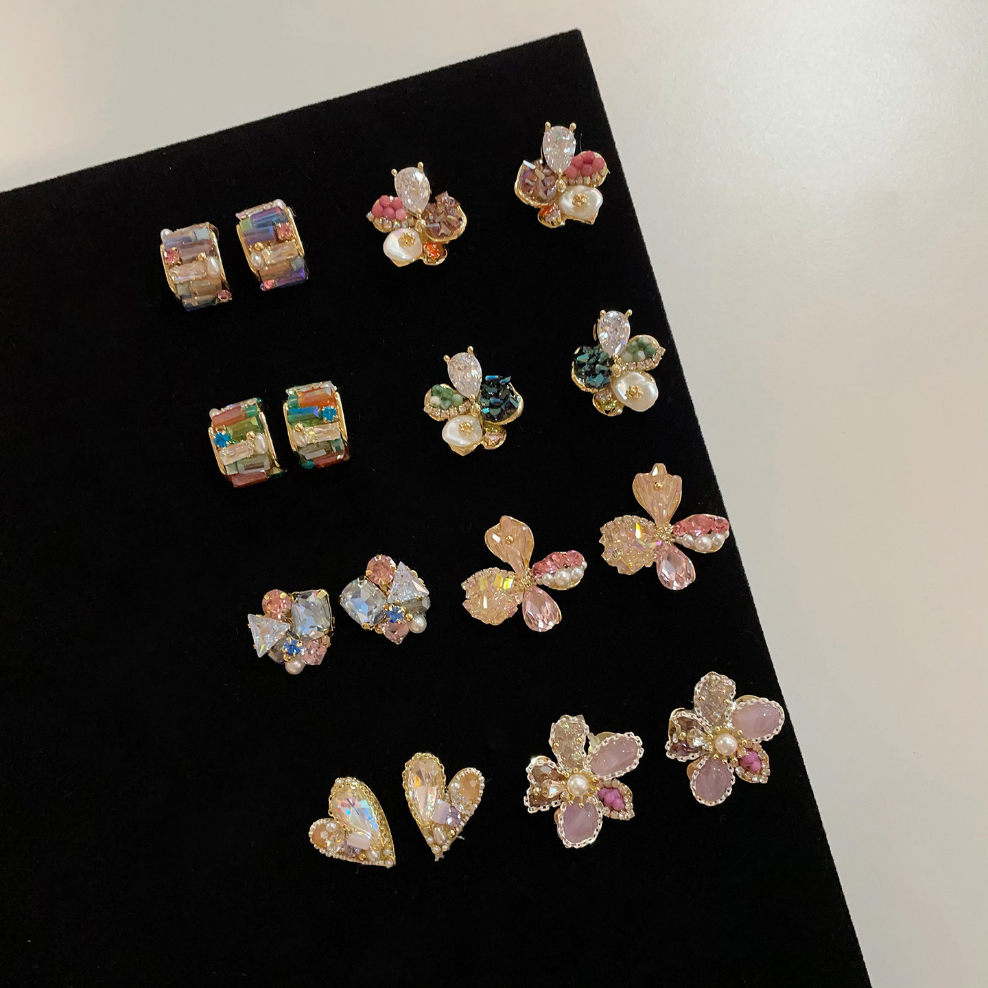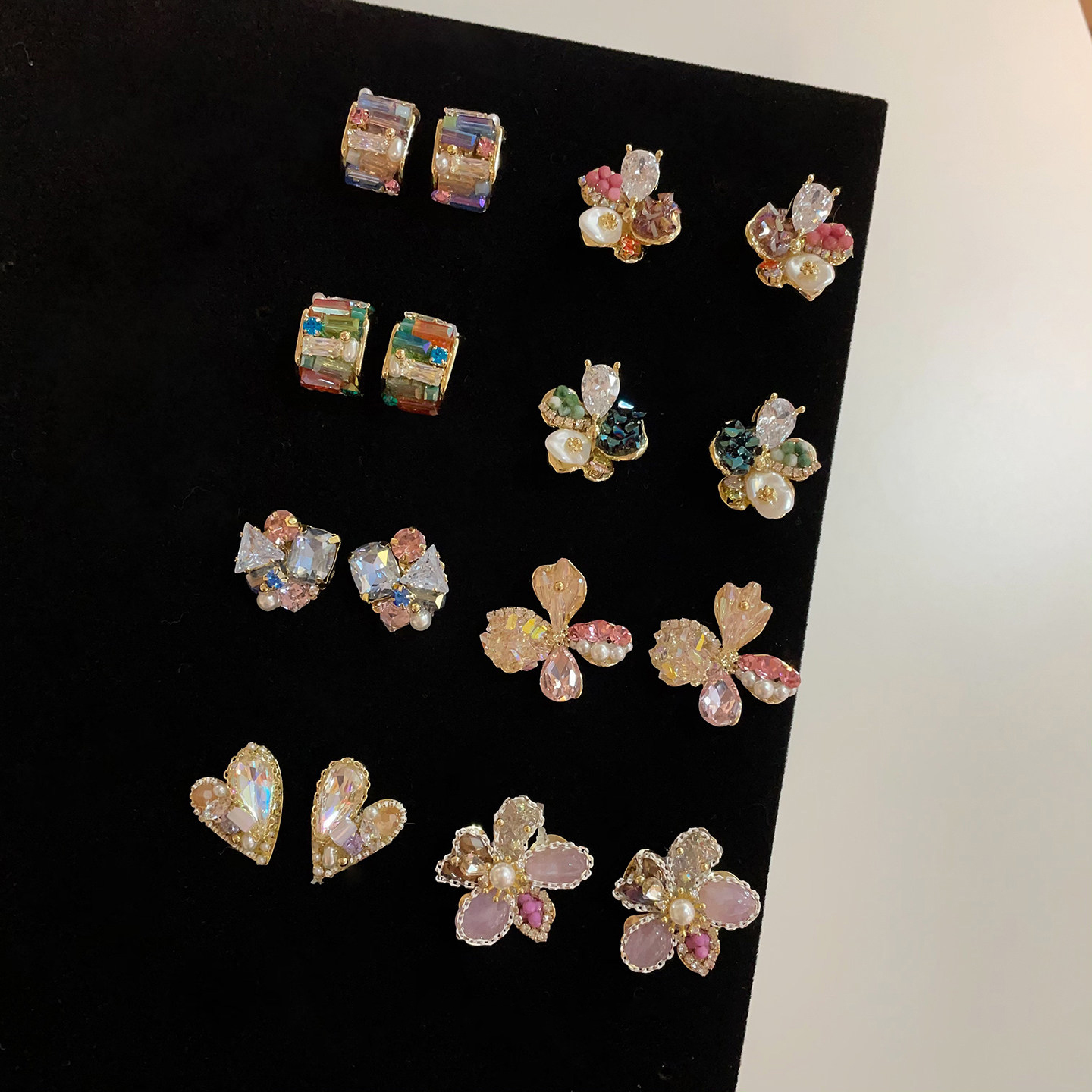 重工多彩水晶花朵耳環