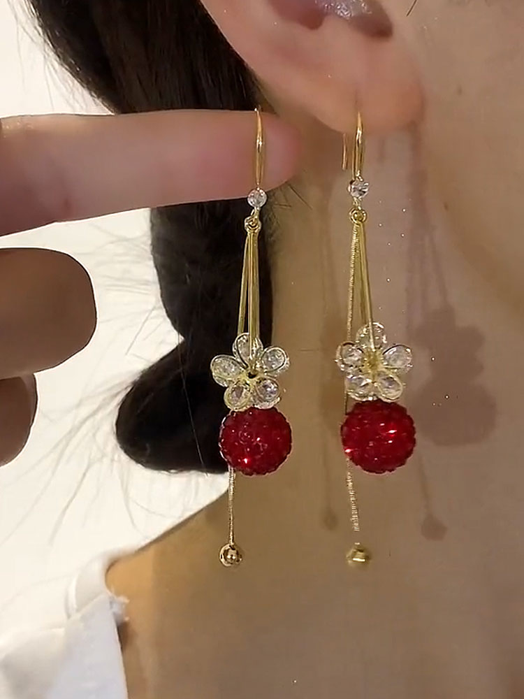 超仙紅色貓眼石流蘇耳環