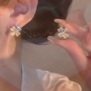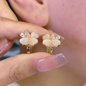 氣質貓眼石四葉花耳環