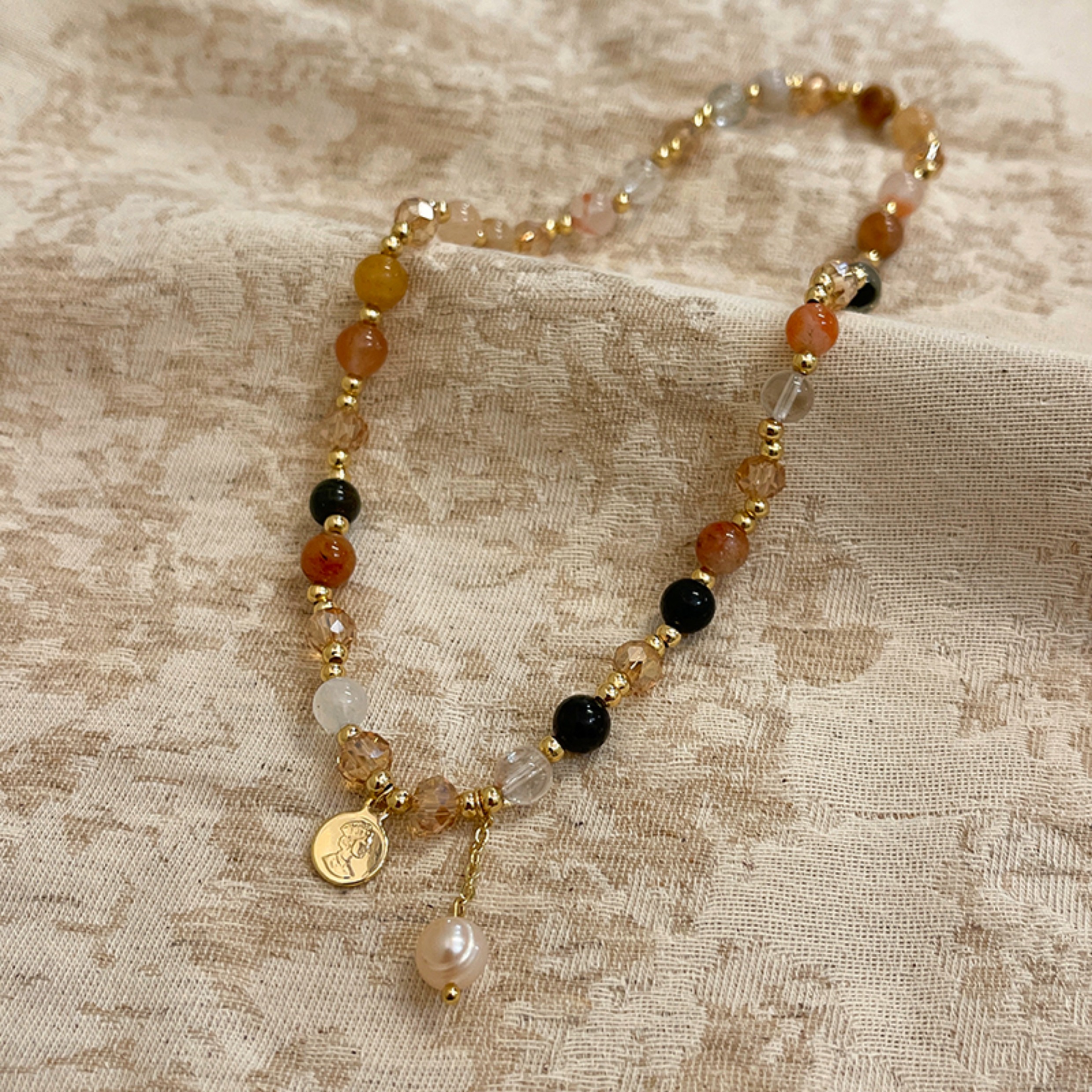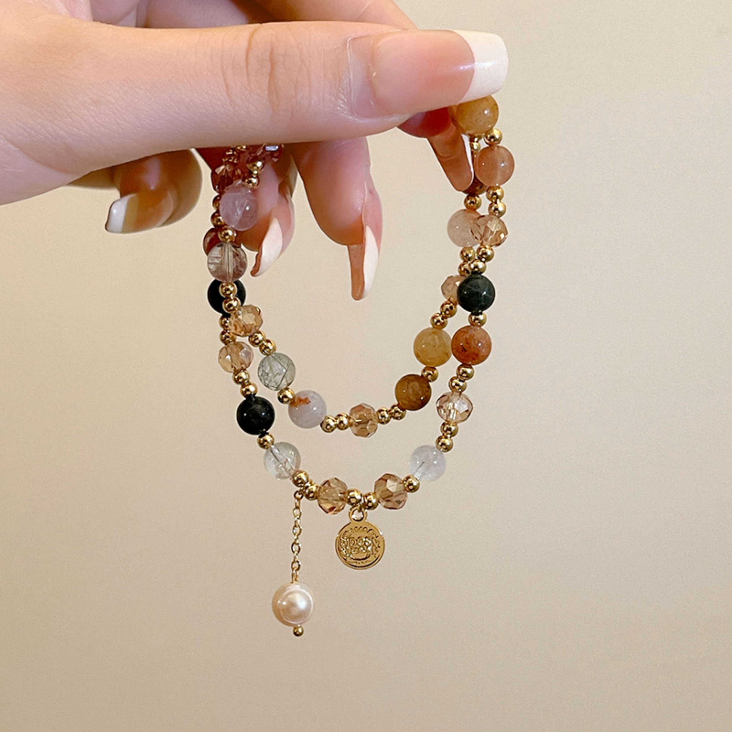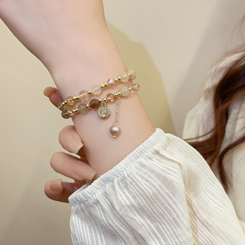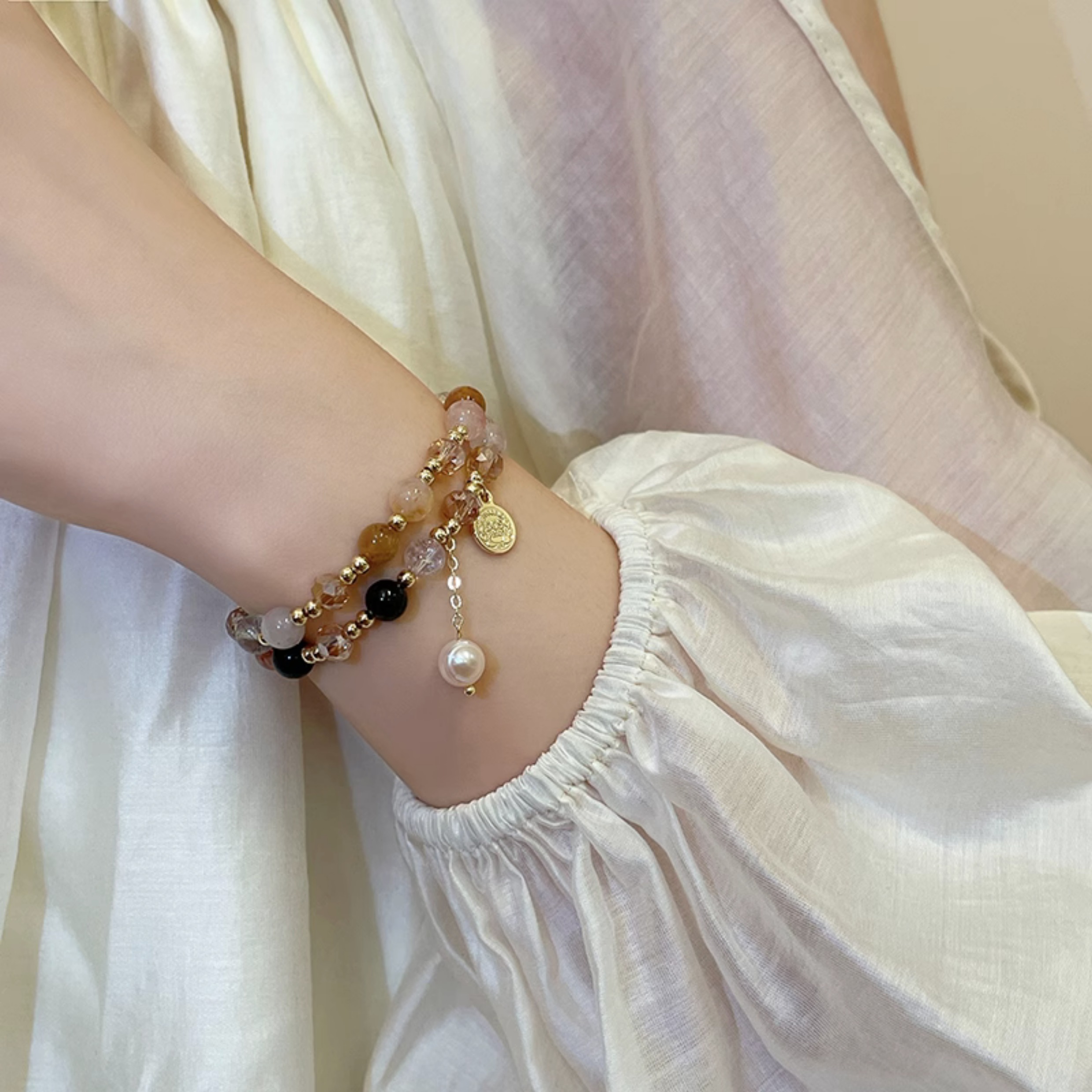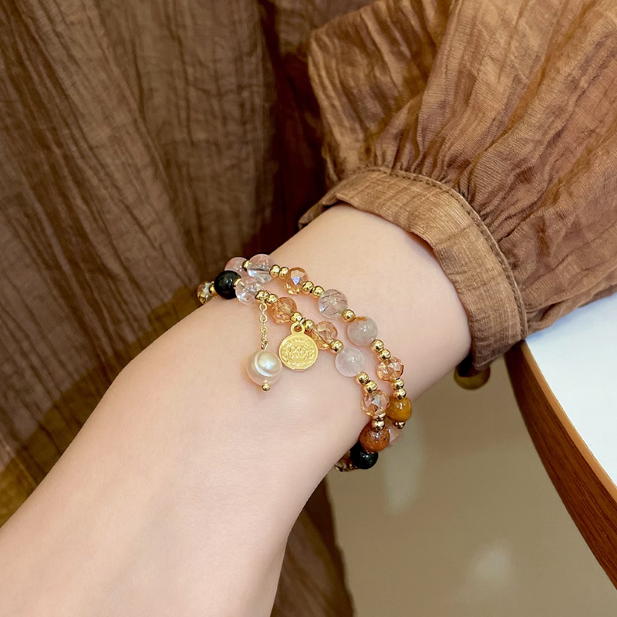 雙層茶晶水晶串珠手錬 疊戴手錬