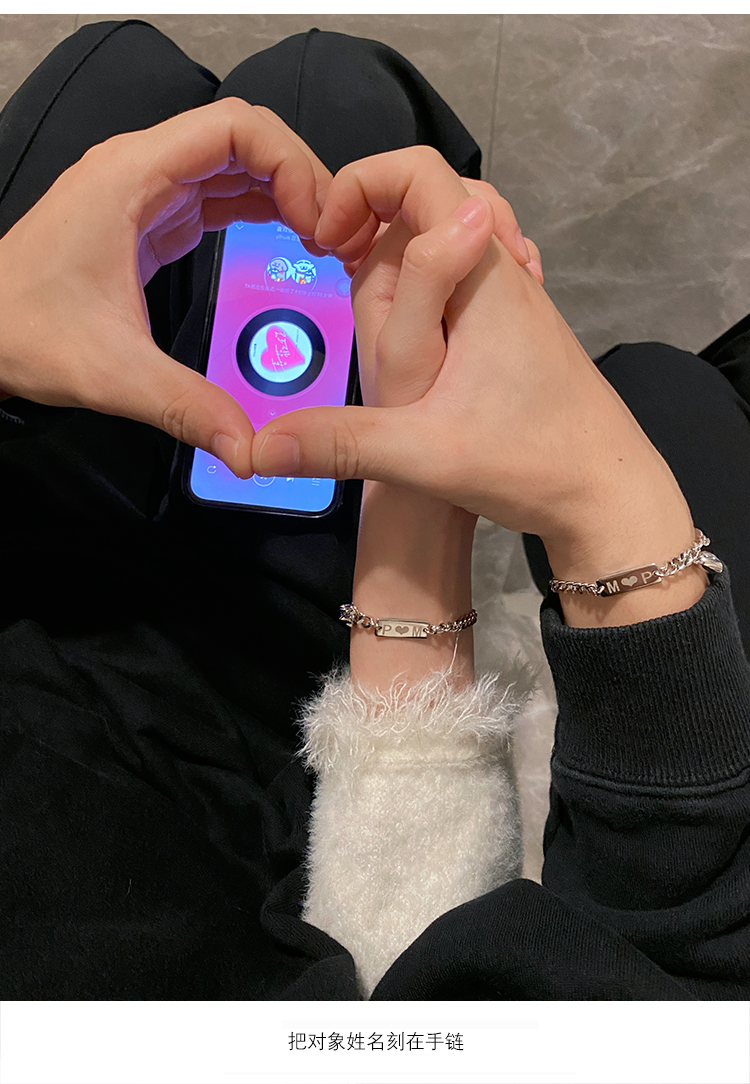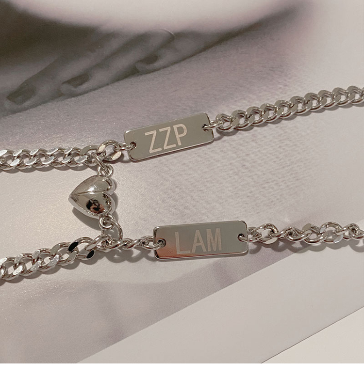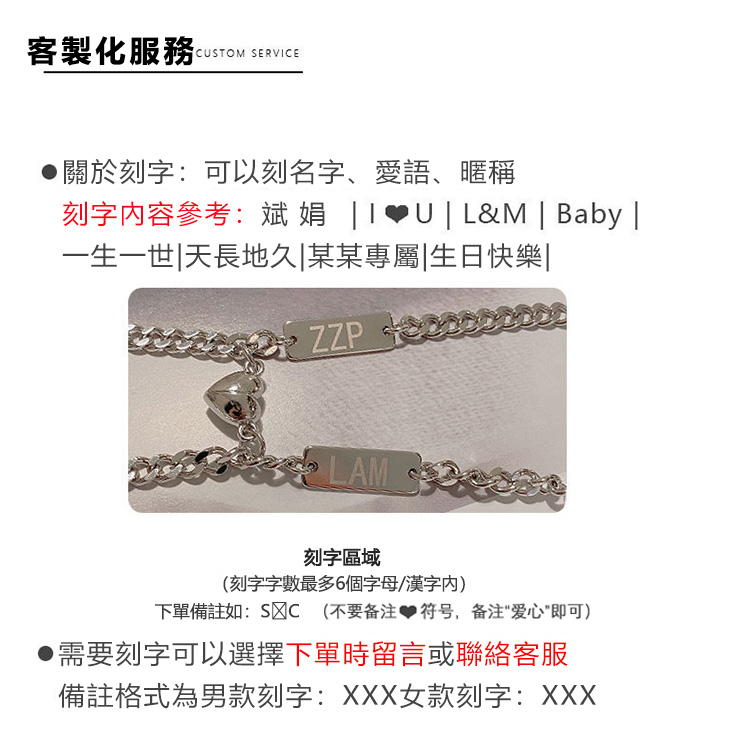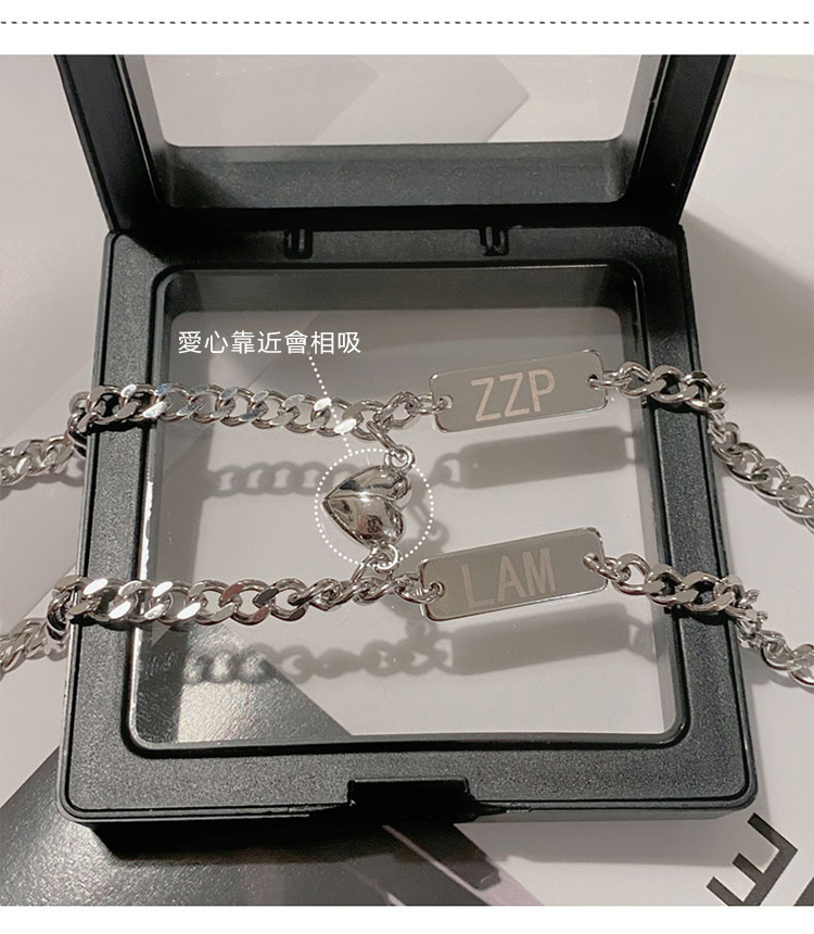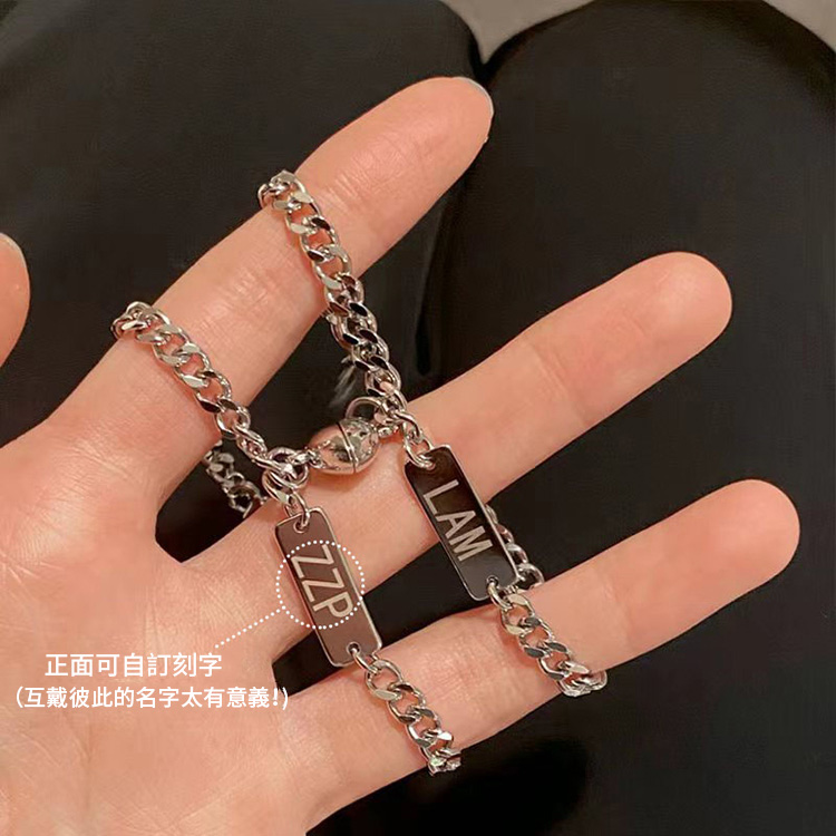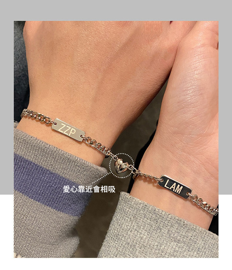 訂製款| 925純銀愛心相吸情侶客製化手錬