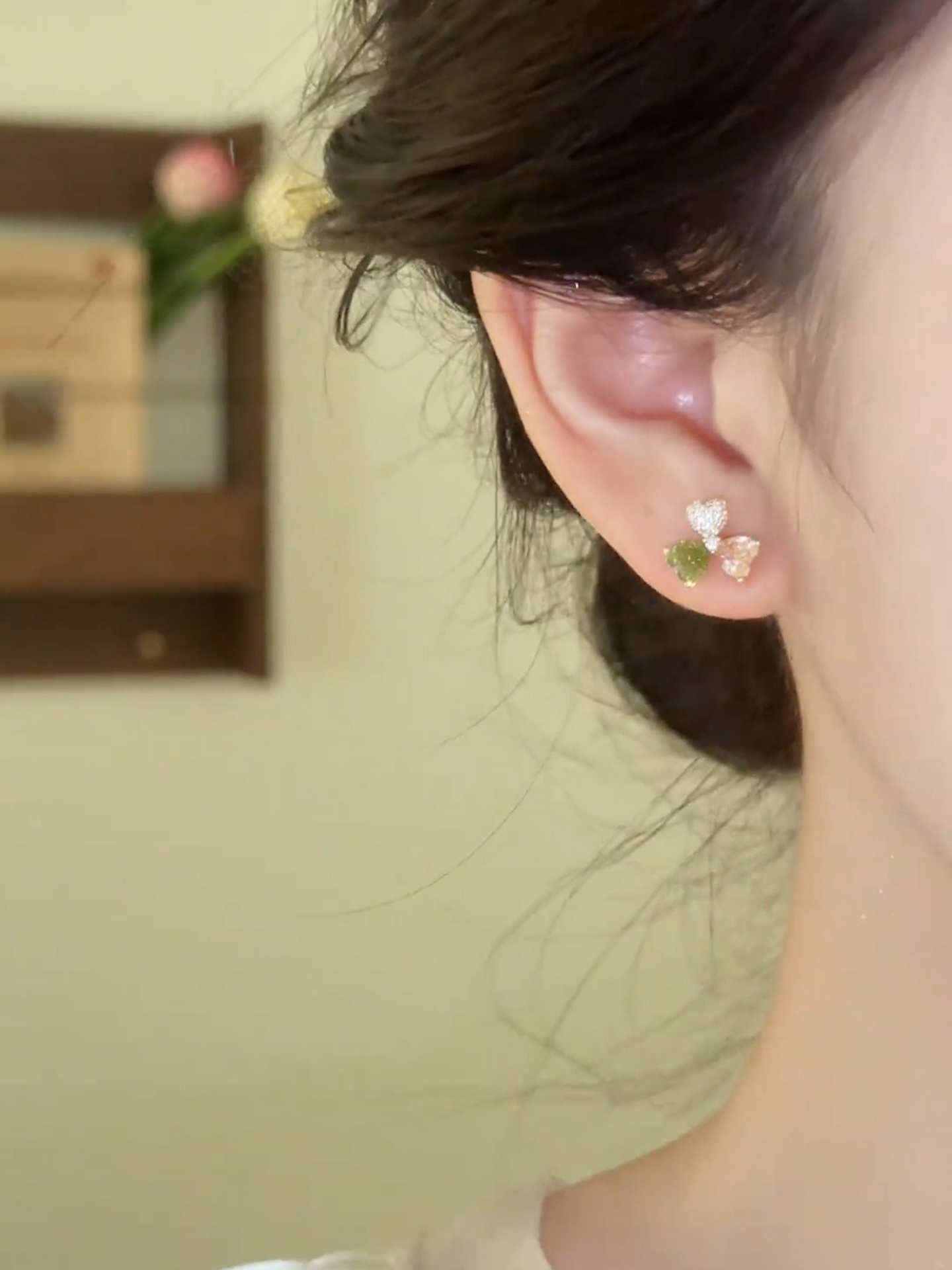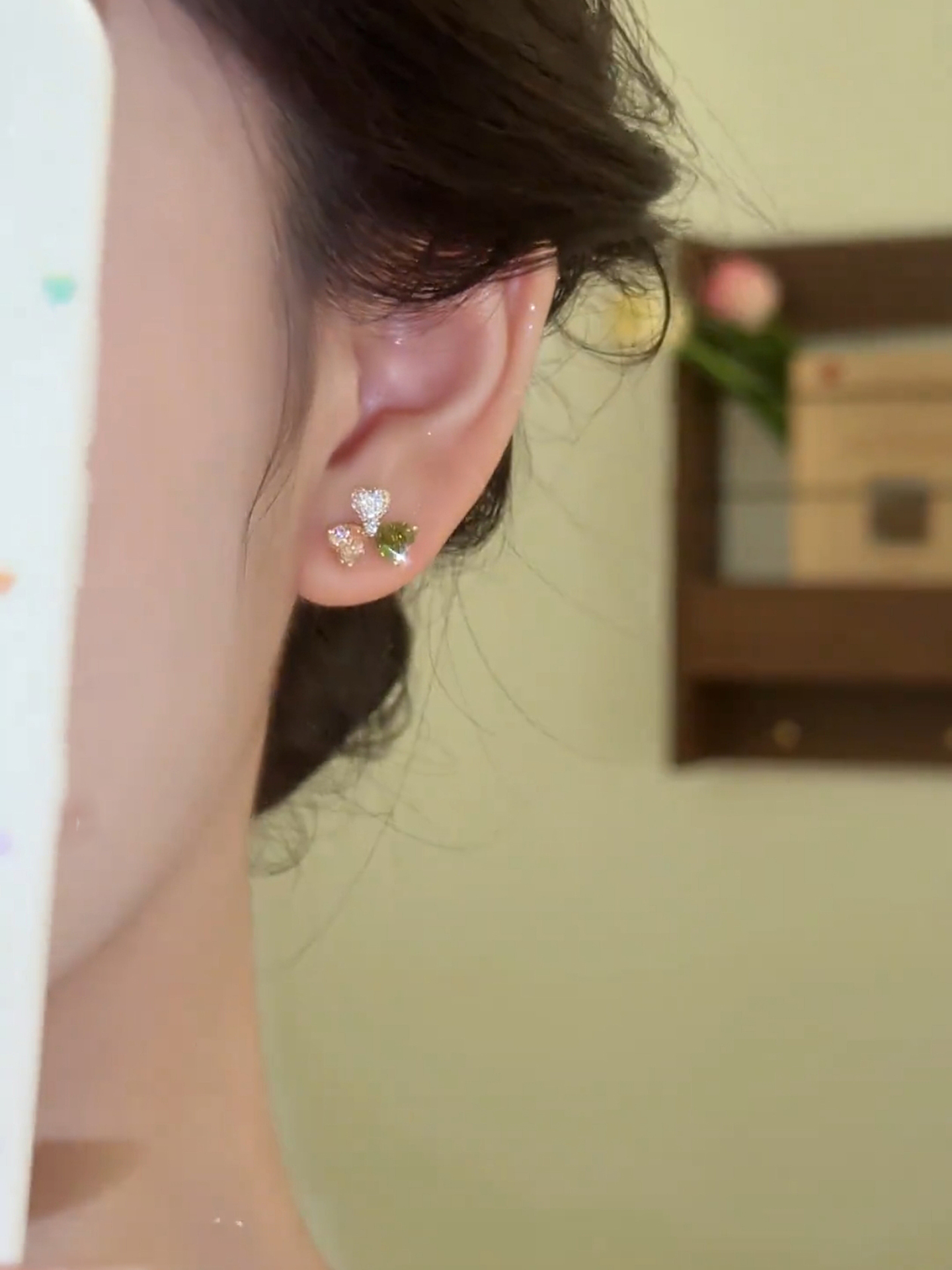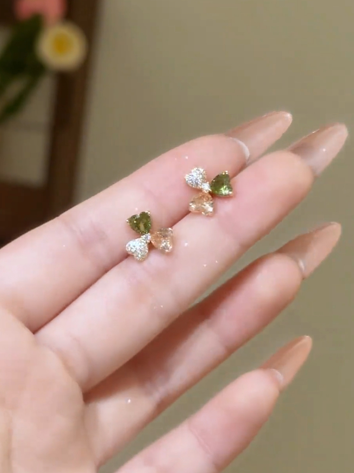 精緻輕奢彩色三葉草耳環