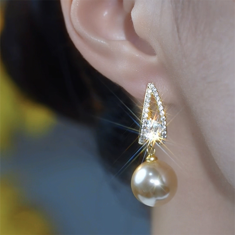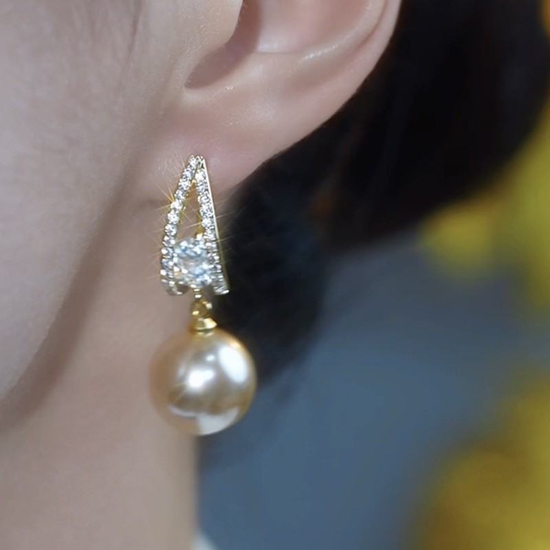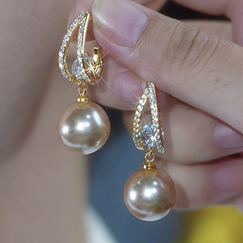 法式閃鑽香檳色珍珠耳環
