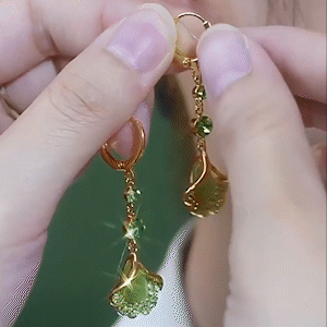 新款鑲鑽綠色貓眼石銀杏葉耳環
