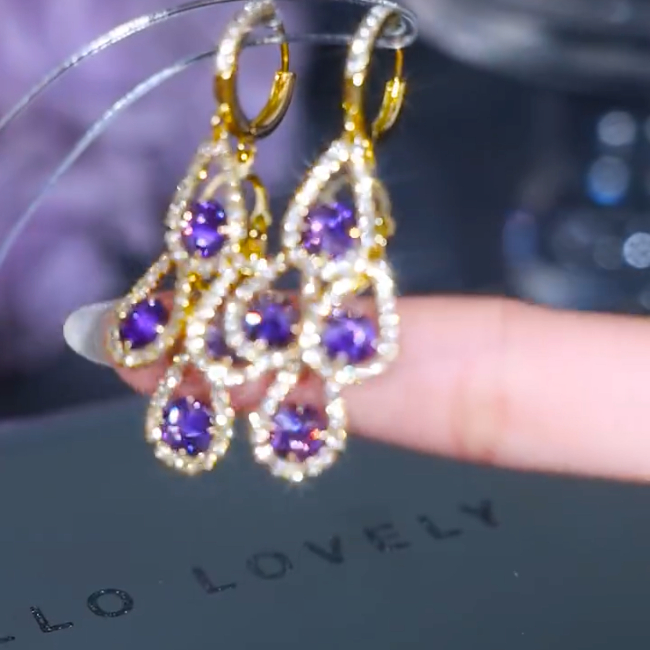 百搭氣質紫色水滴流蘇耳環