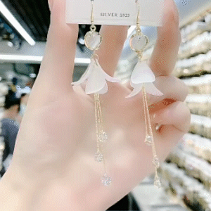 森系貓眼石白色花瓣流蘇耳環