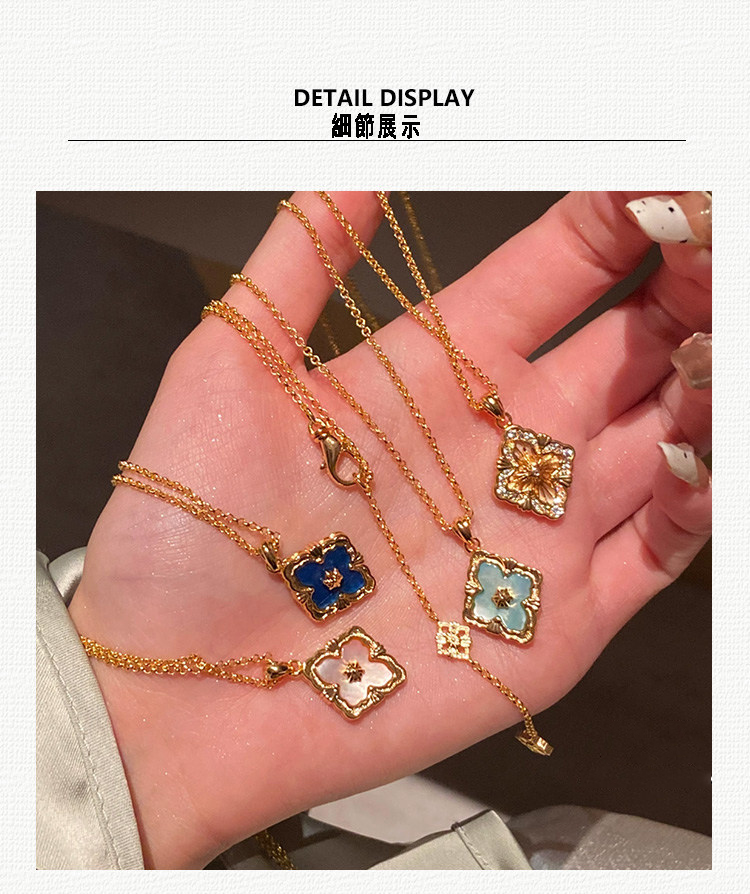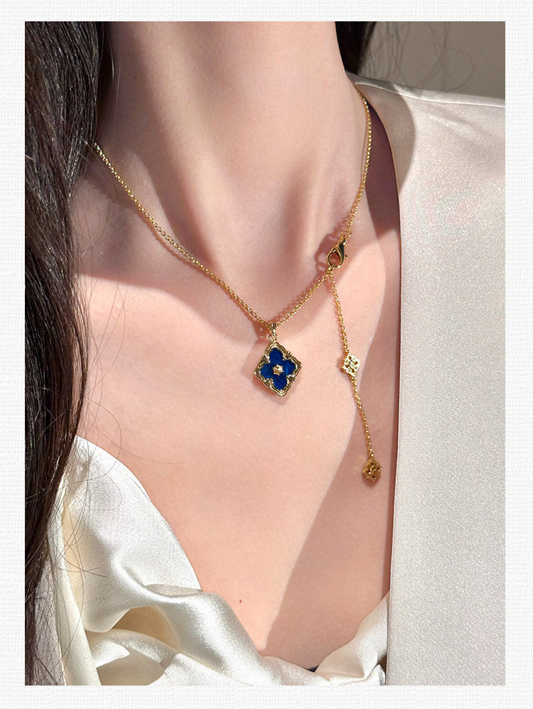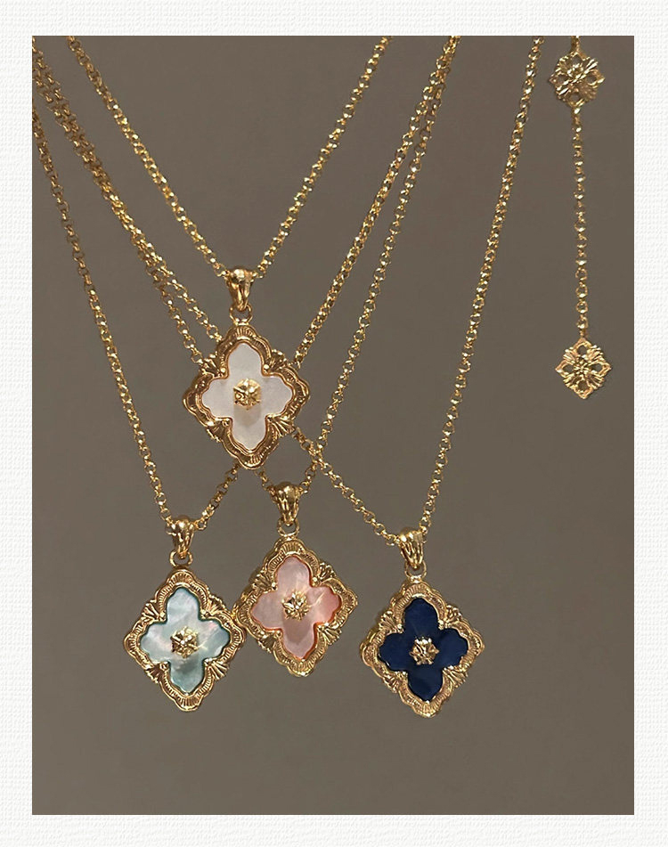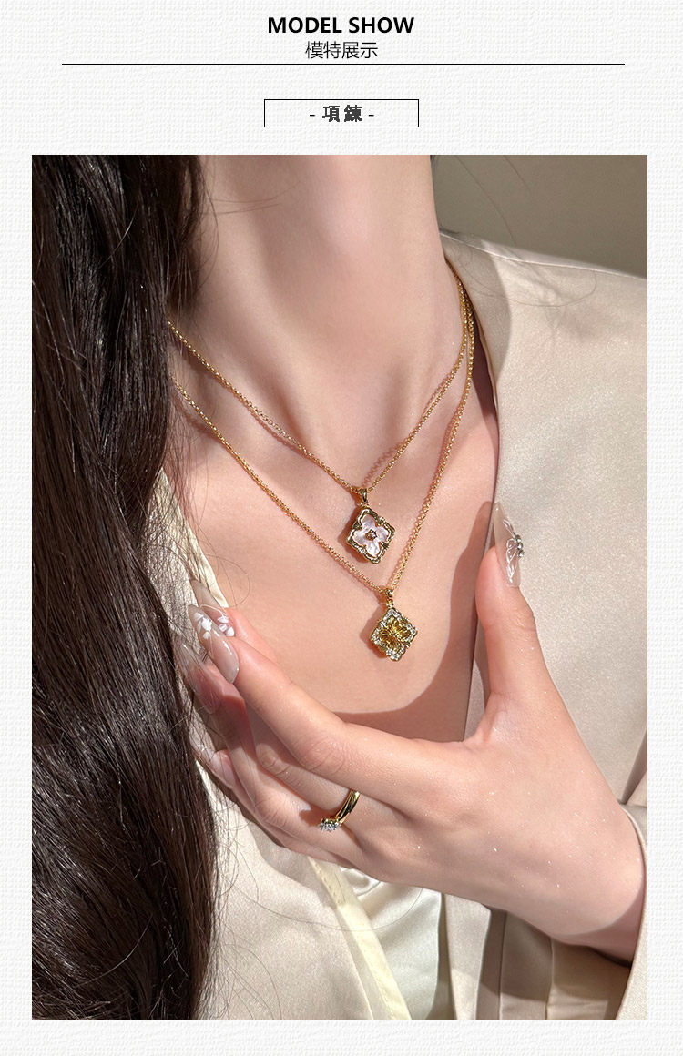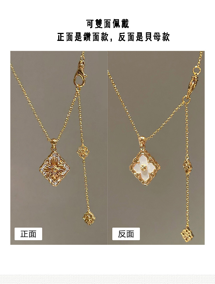 拉絲貝母四葉草雙面鎖骨錬