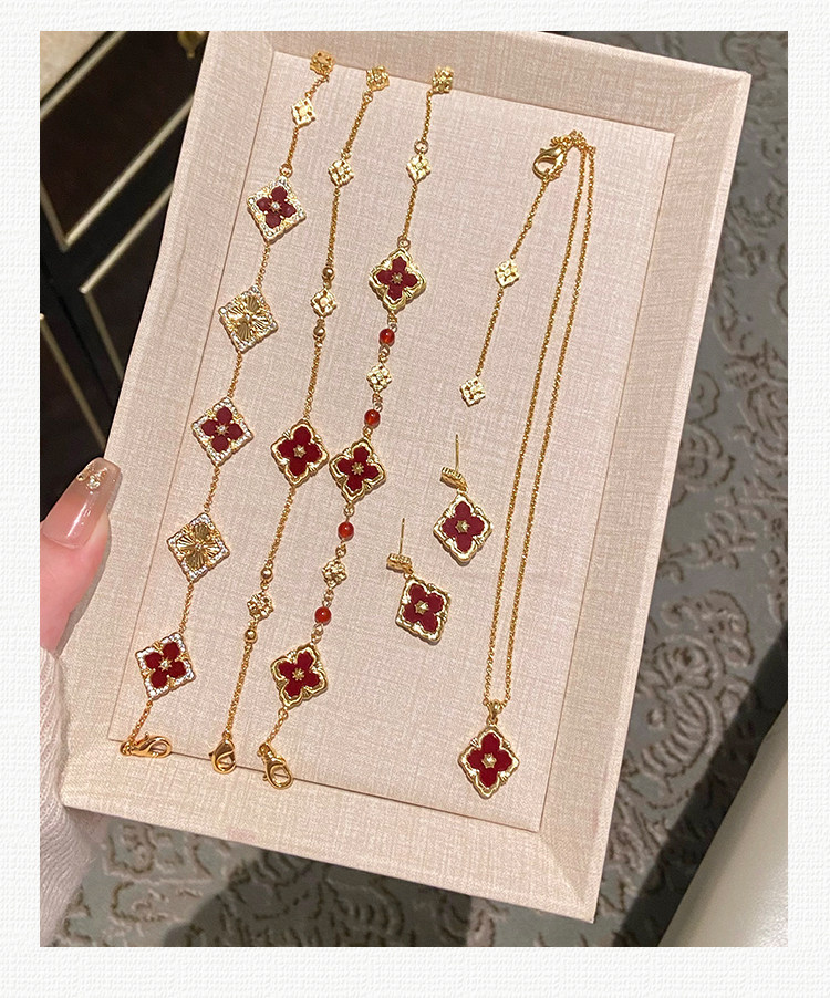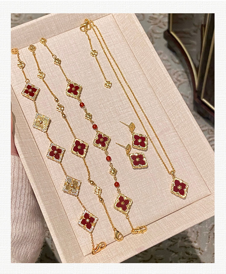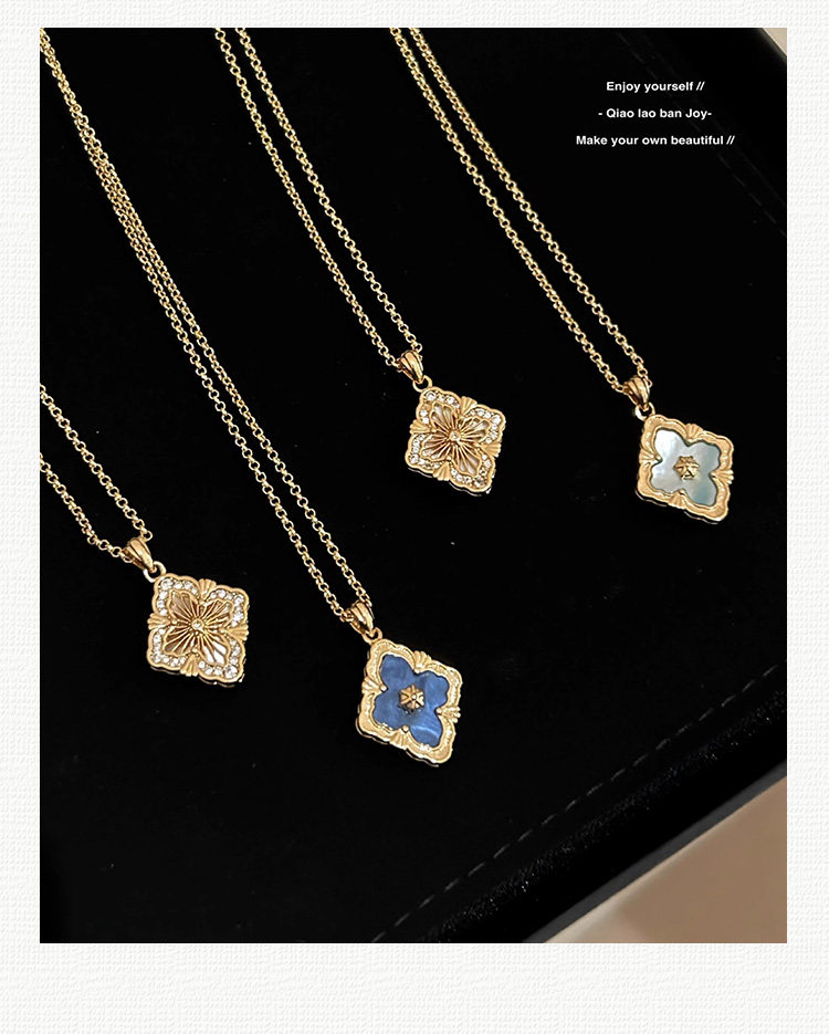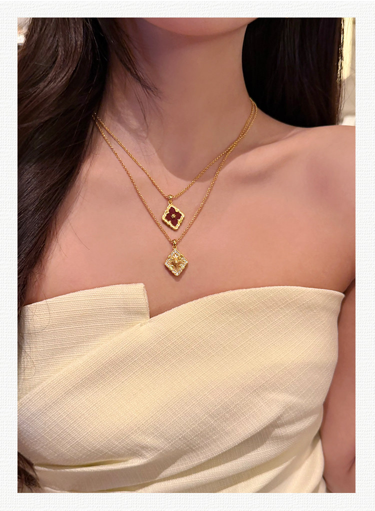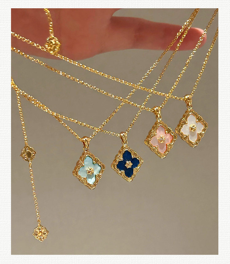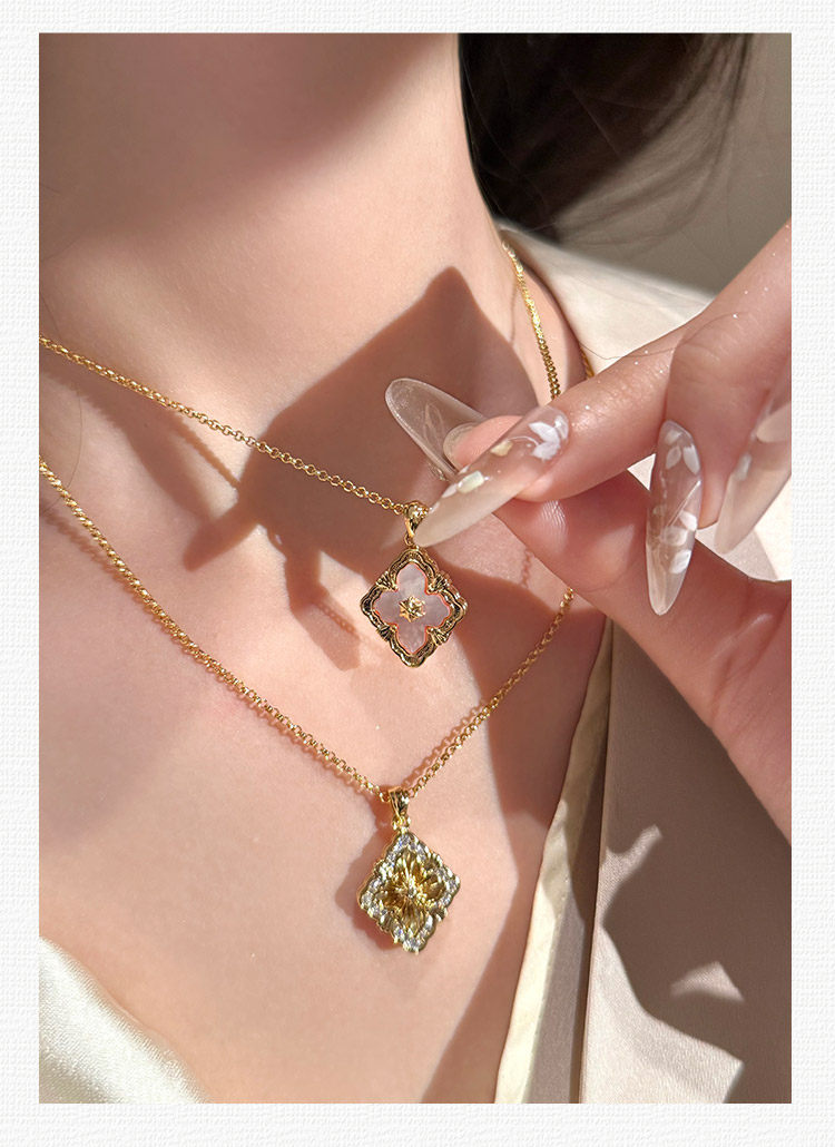 拉絲貝母四葉草雙面鎖骨錬